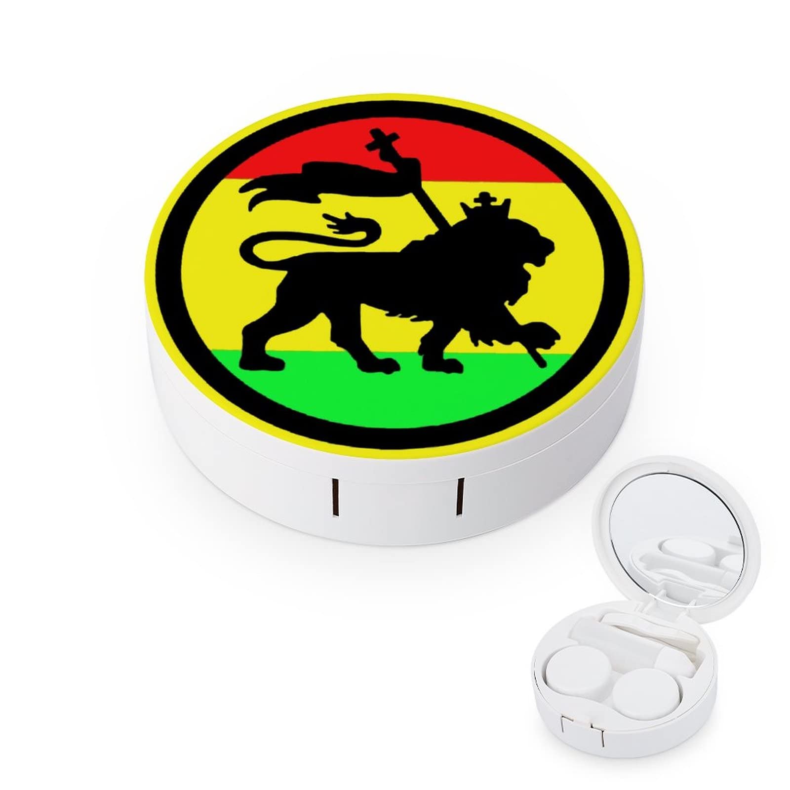 Lion in Jamaica Round Case For Contact Lens Kit Storage Box with Mirror Printed
