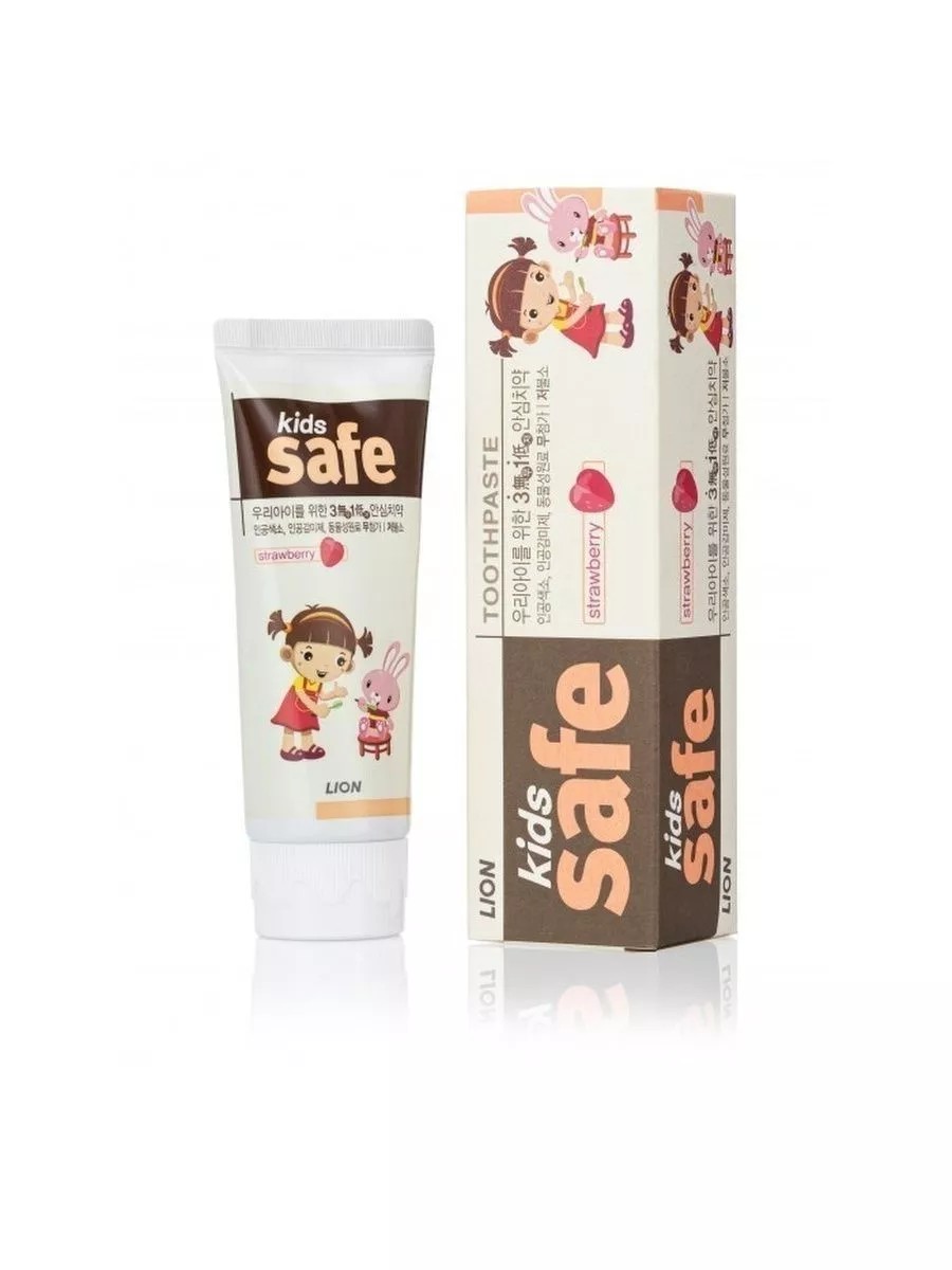 LION "KIDS SAFE" Strawberry-Flavored Children's Toothpaste, for ages 3 to 12. An effective, natural, and safe-to-swallow children's toothpaste that protects against cavities. This toothpaste truly cares for your child's oral cavity. It prevents cavities and periodontitis. It whitens and intensively strengthens your child's tooth enamel. Eliminates unpleasant odor, maintaining a long-lasting feeling of freshness and a pleasant mouth aroma. The berry flavor of strawberry will make brushing your child's teeth a pleasure. CONTAINS NO: saccharin, parabens, artificial colors, or preservatives. Fluoride content no more than 0.0489%. Directions for use: Squeeze a small amount of paste onto a damp toothbrush. Follow proper brushing technique when using. It is recommended to use the paste twice a day. Precautions: Children under 6 years of age should brush their teeth under parental supervision.