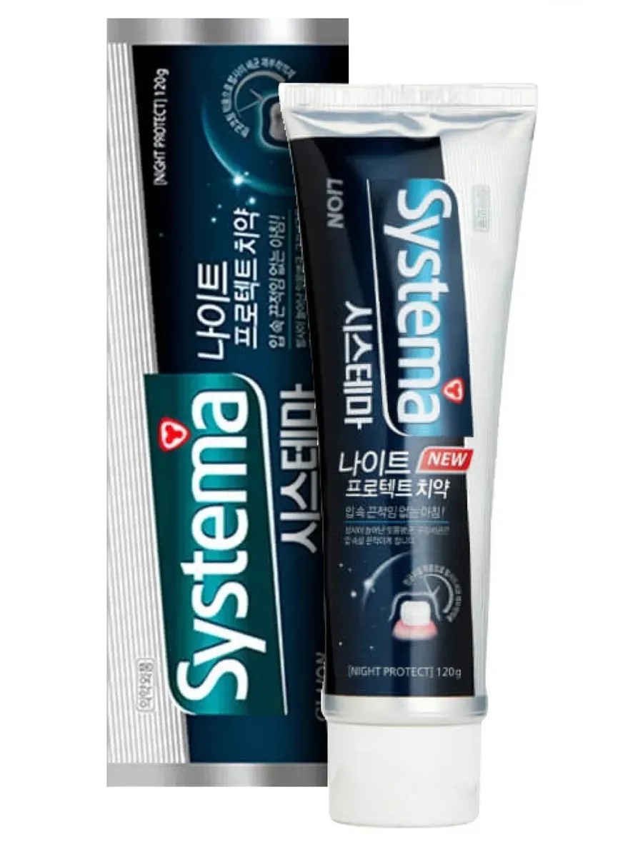 Lion Systema Night Protect Night Toothpaste 120g, 1 piece. Lion Systema Night Protect antibacterial night toothpaste maintains optimal oral microflora, preventing unpleasant odor and plaque after sleep. It inhibits the growth of harmful bacteria, prevents cavities and tartar, and strengthens sensitive gums. This toothpaste has an antiseptic and soothing effect, enhances protective functions, and improves tooth enamel. It thoroughly cleans, soothes inflammation, relieves discomfort, and maintains a feeling of freshness for a long time. This gel toothpaste is perfectly refreshing and has a pleasant aroma. How to use: squeeze a small amount of paste onto your toothbrush, brush your teeth thoroughly for 1-2 minutes. Rinse your mouth with water.