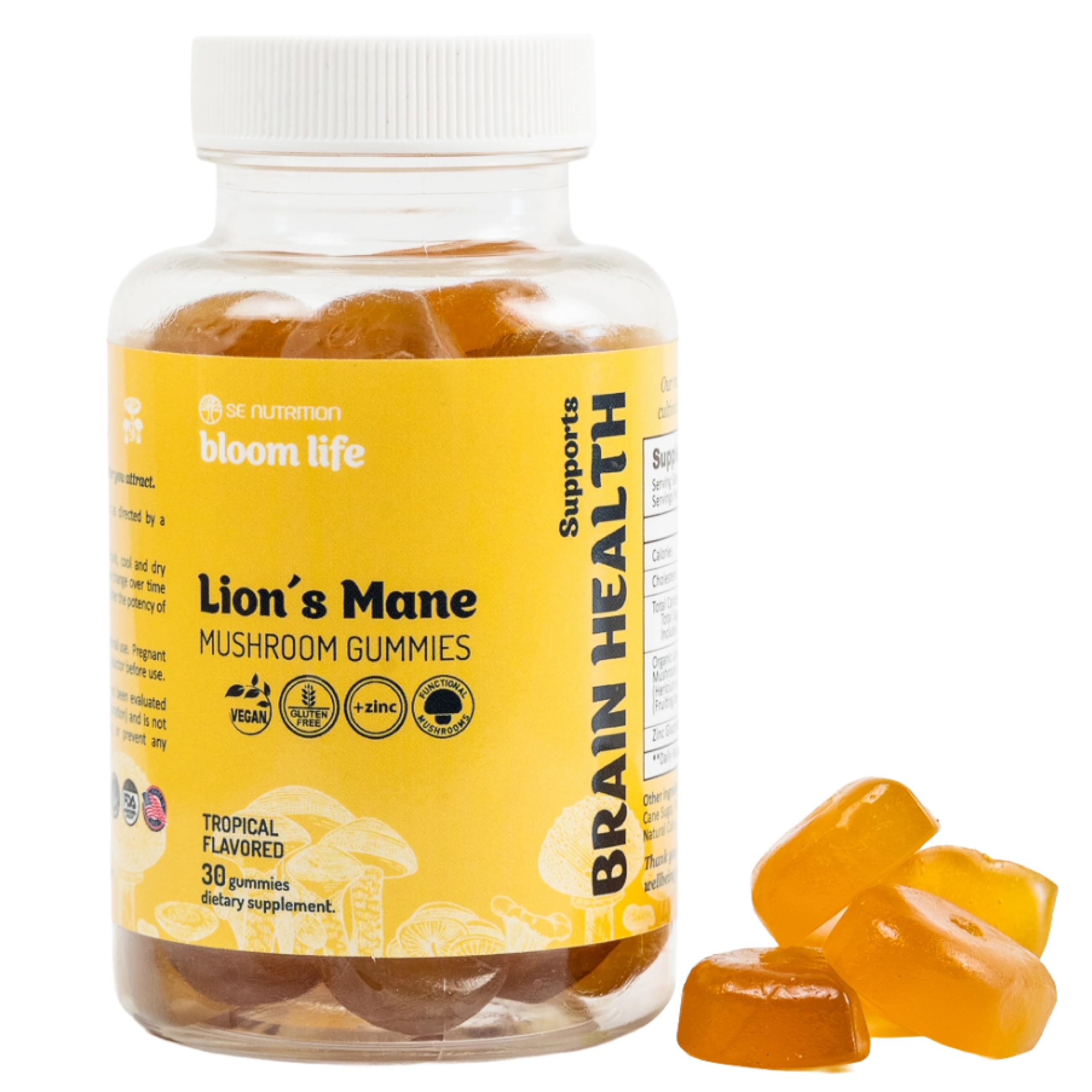 Lion s Mane Mushroom Gummies with Zinc Clean Natural Vegan Non GMO Gummy Brain Focus & Immune Support Daily Adaptogen Chewables 30 Gummies Made in USA