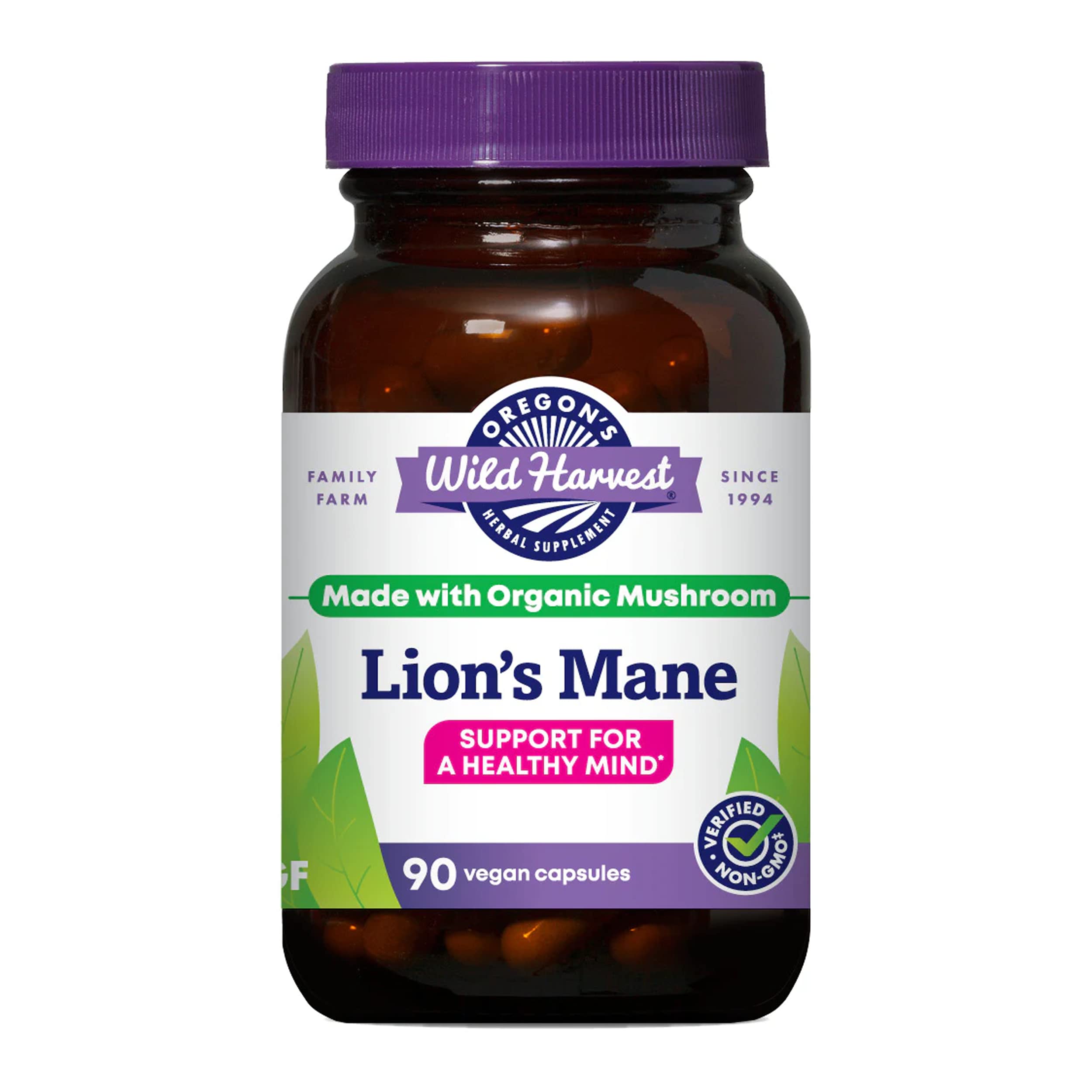 Lion's Mane Organic Herbal Supplement Vegan Capsules by Oregon's Wild Harvest 90 count