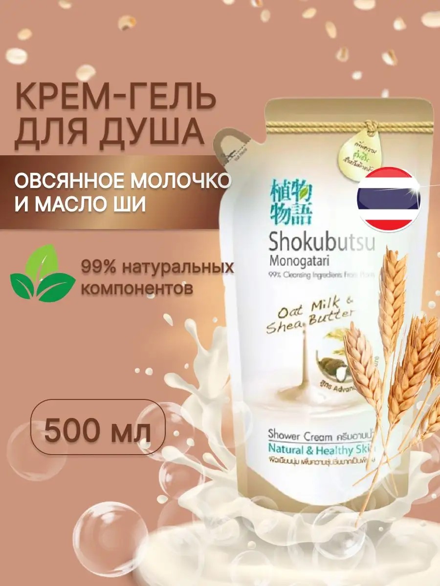 Lion Shokubutsu Monogatari Oat Milk & Shea Butter Advanced Moisture Shower Cream — Интенсивно увлажняющий гель-крем для душа Овсяное молочко и масло Ши. Гели для душа японской марки Lion произведены в Тайланде под строгим контролем, с растительными экстрактами. Гель для душа в мягкой упаковке, что очень удобно, его можно перелить в любой дозатор.