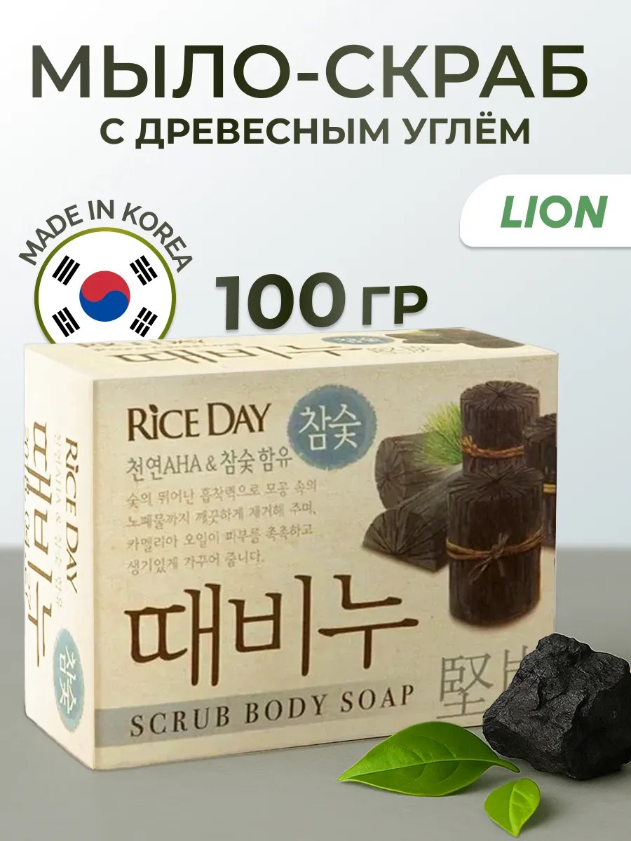 Lion Туалетное мыло скраб с древесным углем Rice Day 100г