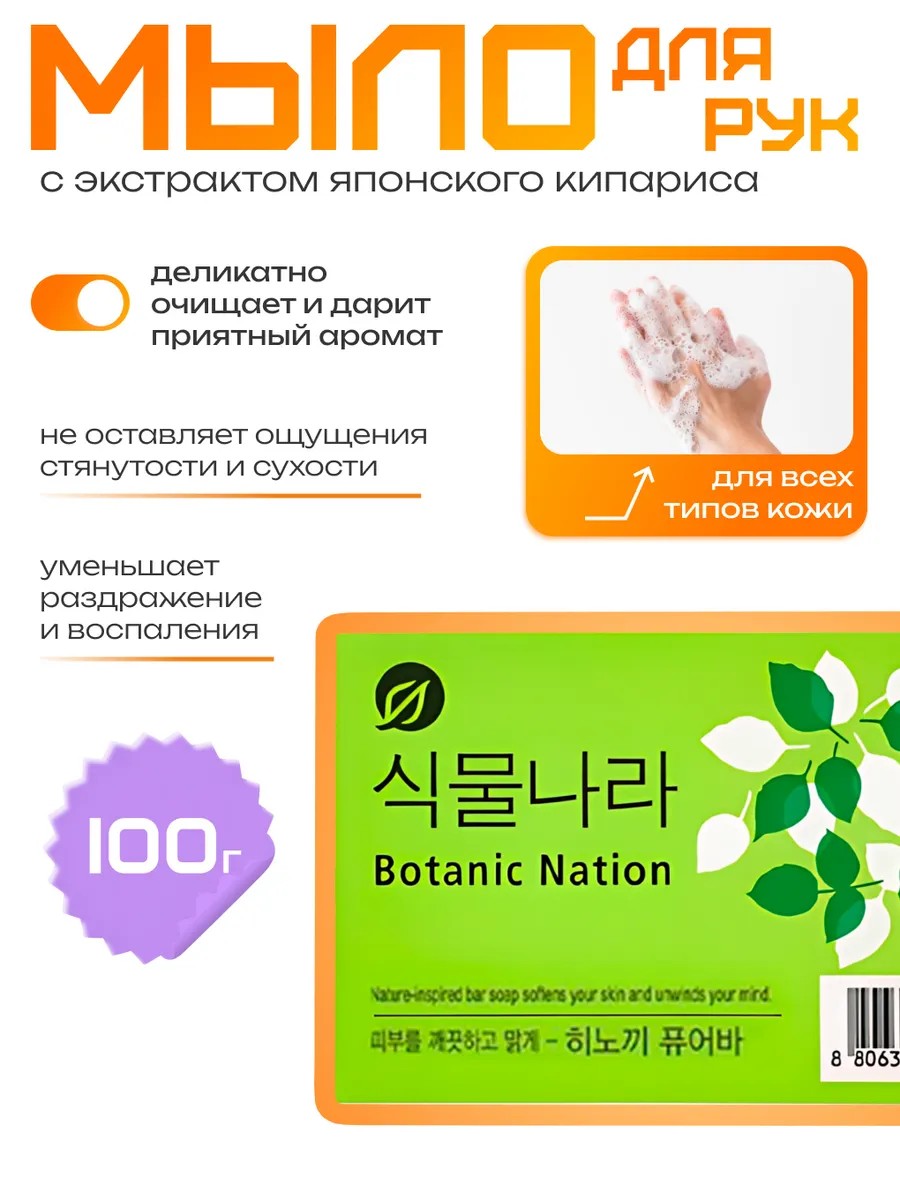 This delicate toilet soap with Japanese cypress extract creates a rich, airy lather that does the job perfectly! Skin becomes velvety, well-groomed, and smooth, as if after a spa treatment. The beneficial properties of toilet soap: If you're a fan of all things natural, then this soap will definitely impress you. Let's take a look at the ingredients of this care product: Japanese cypress extract. Makes skin firm and elastic; | herbal extracts. Increase collagen production, soften the dermis, and promote cellular regeneration; | olive oil. Protects from UV rays, reduces the number of keratinized particles; | African rosbos extract. Fills the skin with vitality. As you can see, this soap is a storehouse of beneficial substances. It is suitable for sensitive skin, so if your skin is prone to allergic reactions, you can safely purchase this cosmetic product!