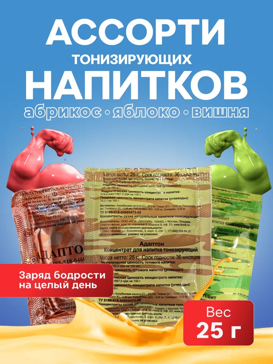 Ассорти тонизирующих напитков Адаптофит (вишня), Адаптон (абрикос), Адаптовит (яблоко)