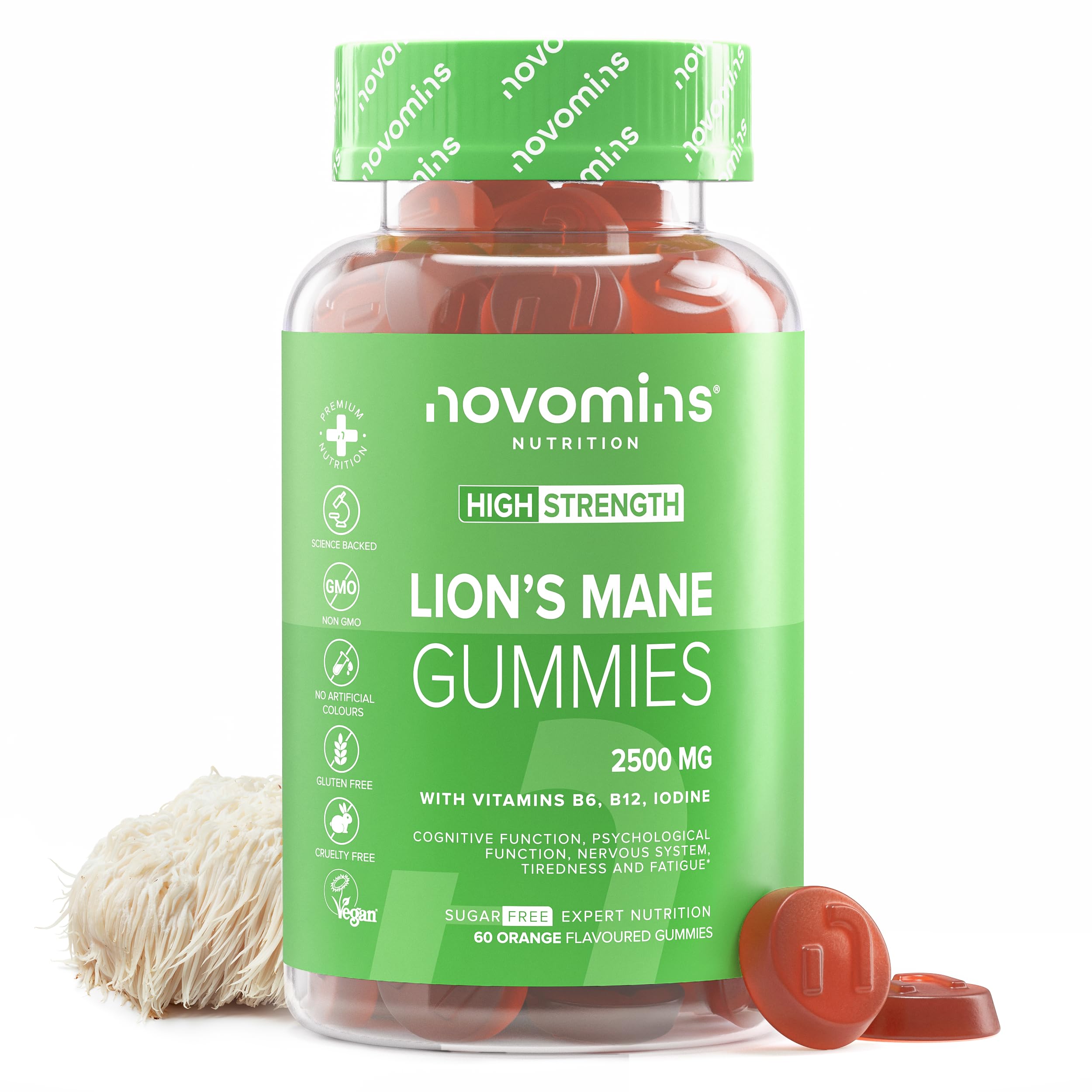 Unlock your mind's potential with the Wig Fungus Supplement with Vitamin B6, B12 and Iodine. Our formula is enriched with the adaptogenic power of the Wig fungus. Your health is our priority. Our sugar-free wig fungus supplement is produced under strict Good Manufacturing Practices (GMP), which ensures premium quality, safety and efficacy in every gummy. Ingredients: Sweeteners (Maltitol Solution, Isomalt), Hericium Erinaceus Extract, Pectin, Polydextrose, Coconut Oil, Acidity Regulator (Citric Acid, Sodium Citrate), Natural Orange Flavor, Glazing Agent (Vegetable Oil (Sunflower Oil) (contains Carnauba Wax)), Purple Carrot Juice Concentrate, Iodine (Potassium Iodide), Vitamin B6 (pyridoxine hydrochloride), Vitamin B12 INGREDIENTS Sweeteners (Maltitol Solution, Isomalt), Lion's Mane (Hericium Erinaceus Extract), Pectin, Polydextrose, Coconut Oil, Acidity Regulators (Citric Acid, Sodium Citrate), Natural Orange Flavor, Glazing Agent (Vegetable Oil (Sunflower Oil) (contains Carnauba Wax)), Concentrated Purple Carrot Juice, Iodine (Potassium Iodide), Vitamin B6 (Pyridoxine hydrochloride), Vitamin B12 (Cyanocobalamin)WHY CHOOSE NOVOMINS WIG MUSHROOM GUMMIS - Novomins stands for top quality wig fungus gummis, enriched with important vitamins and iodine. Our products are safe, ethical and produced according to strict Good Manufacturing Practices (GMP). WITH WIG MUSHROOM - Our specially formulated gummies contain a powerful blend of wig fungus, vitamin B6, B12 and iodine. SCIENTIFICALLY FORMULATED LIONS MANE GUMMIES WITH VITAMIN B6, B12 AND IODINE – Our gummies contain 2500 mg of wig fungus extract and combine the unique properties of wig fungus with essential vitamins B6, B12 and iodine, all from vegan sources. WHAT ARE THE BENEFITS OF LIONS MANE GUMMIS? – Wig fungus is a nootropic mushroom known for its positive influence on overall well-being. HIGH-DOSE 2500MG WIG MUSHROOM GUMMIS - Our sugar-free wig fungus gummies with 2500 mg wig fungus extract have been developed to stimulate your senses. Unlike other mushroom supplements, our gummies have a delicious orange flavor.Lion's Mane Gummies 2500mg - Suikervrij - 1 Maand Voorraad - met Vitamine B6, B12 - Alternatief voor Lion's Mane Tabletten - Hericium Erinaceus - Pruikzwam Nootropische - Novomins Ontgrendel het potentieel van je geest met het Pruikzwam-supplement met vitamine B6, B12 en jodium. Onze formule is verrijkt met de adaptogene kracht van de Pruikzwam. Jouw gezondheid is onze prioriteit. Ons suikervrije prruikzwam-supplement wordt geproduceerd volgens strikte Good Manufacturing Practices (GMP), wat premium kwaliteit, veiligheid en werkzaamheid in elke gummi garandeert. Ingrediënten: Zoetstoffen (Maltitoloplossing, Isomalt), Hericium erinaceus-extract, Pectine, Polydextrose, Kokosolie, Zuurteregelaar (Citroenzuur, Natriumcitraat), Natuurlijke sinaasappelsmaak, Glansmiddel (Plantaardige olie (zonnebloemolie) (bevat carnaubawas)), Paars wortelsapconcentraat, Jodium (kaliumjodide), Vitamine B6 (pyridoxinehydrochloride), Vitamine B12 INGREDIËNTEN Zoetstoffen (Maltitoloplossing, Isomalt), Lion's Mane (Hericium Erinaceus-extract), Pectine, Polydextrose, Kokosolie, Zuurteregelaars (Citroenzuur, Natriumcitraat), Natuurlijke sinaasappelsmaak, Glansmiddel (Plantaardige olie (Zonnebloemolie) (bevat Carnaubawas)), Geconcentreerd paarsewortelsap, Jodium (Kaliumjodide), Vitamine B6 (Pyridoxinehydrochloride), Vitamine B12 (Cyanocobalamine)WAAROM KIEZEN VOOR NOVOMINS PRUIKZWAM GUMMIS - Novomins staat voor topkwaliteit pruikzwam gummis, verrijkt met belangrijke vitaminen en jodium. Onze producten zijn veilig, ethisch verantwoord en worden geproduceerd volgens strikte Good Manufacturing Practices (GMP). MET PRUIKZWAM - Onze speciaal samengestelde gummis bevatten een krachtige mix van pruikzwam, vitamine B6, B12 en jodium. WETENSCHAPPELIJK SAMENGESTELDE LIONS MANE GUMMIES MET VITAMINE B6, B12 EN JODIUM – Onze gummis bevatten 2500 mg pruikzwamextract en combineren de unieke eigenschappen van pruikzwam met de essentiële vitaminen B6, B12 en jodium, allemaal afkomstig van veganistische bronnen. WAT ZIJN DE VOORDELEN VAN LIONS MANE GUMMIS? – Pruikzwam is een noötropische paddenstoel die bekendstaat om zijn positieve invloed op het algehele welzijn. HOOGGEDOSEERDE 2500MG PRUIKZWAM GUMMIS - Onze suikervrije pruikzwam gummis met 2500 mg pruikzwamextract zijn ontwikkeld om je zintuigen te prikkelen. In tegenstelling tot andere paddenstoelsupplementen hebben onze gummis een heerlijke sinaasappelsmaak.