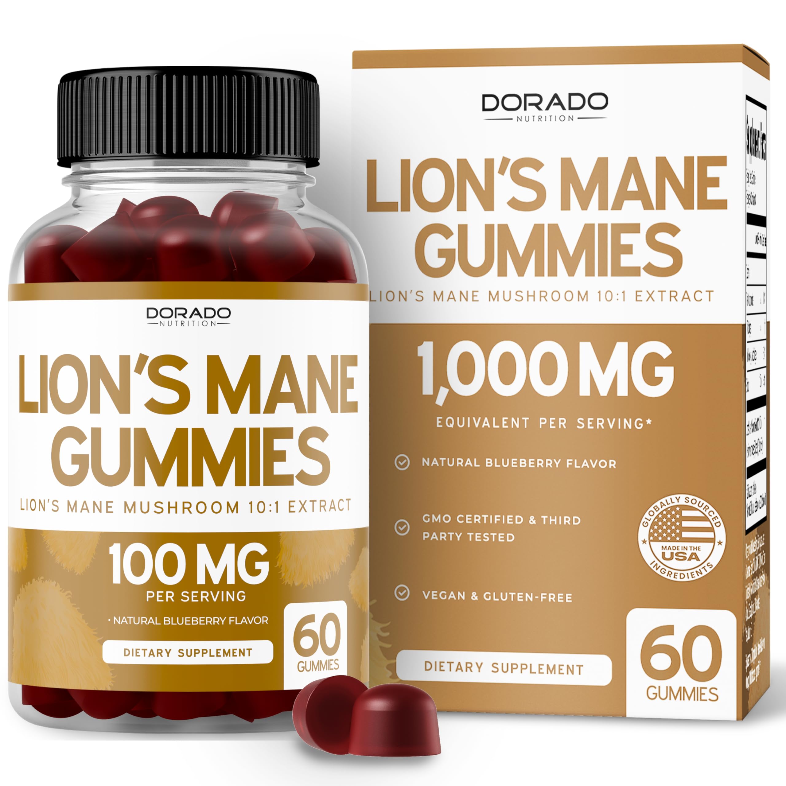 EVER COMPROMISE ON QUALITY - We Take Quality Seriously, Which Is Why Our Gummies are made with only the finest ingredients. We Vigorously Lab Test for Purity and Potency to Ensure You're Getting the Best Product on the Market - That's the Dorado Nutrition Standard!. MAX POTENCY VALUE - Our Gummies Pack a Punch with Extract Equivalent per Serving, Making Them the Most Potent and Effective on the Market. With 60 Servings per Bottle, You'll Get Maximum Value with Every Purchase!. DELICIOUS BLUEBERRY FLAVOR – Enjoy the natural taste of our blueberry-flavored gummies, providing a tasty and convenient way to add Lions Mane Mushroom to your diet every day. PREMIUM LIONS MANE - Each serving contains premium Lions Mane Mushroom extract, carefully crafted into gummies for easy daily use, designed to complement a balanced lifestyle. BOOST YOUR WELLNESS – Our Lions Mane Mushroom Gummies provide a convenient and delicious way to add this natural supplement to your routine, promoting overall wellness for adults.