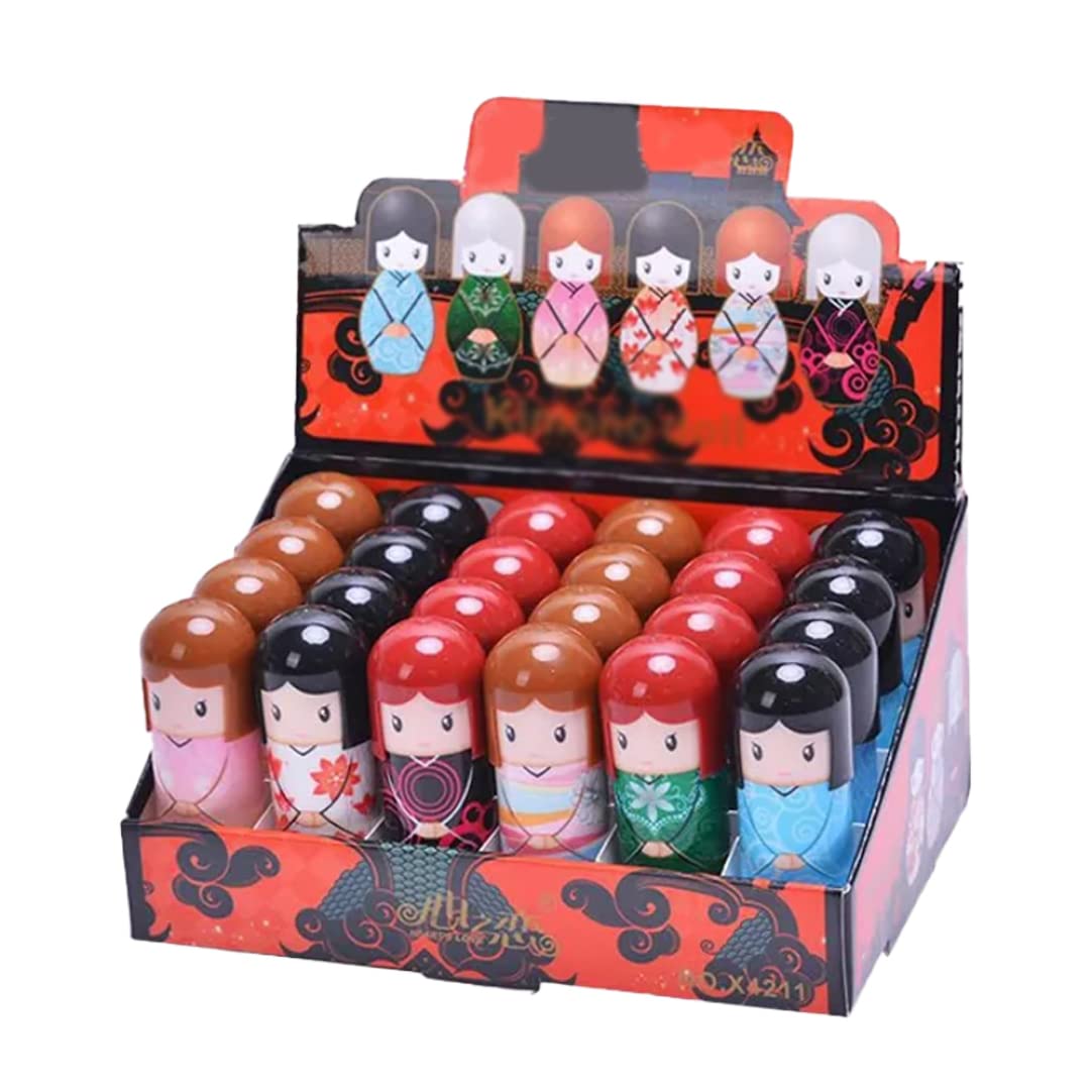 Lip Balm Doll Shaped 24 Lips Repair Moisturizer Lip Care Lip Balm for Remove Dead Skin Nourishing (1 Box).
