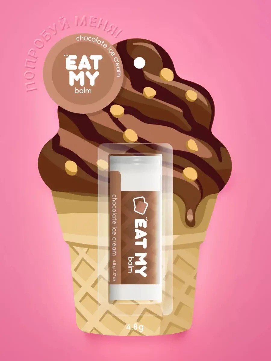 This Chocolate Ice Cream-scented lip balm gently moisturizes and nourishes lips, helping them stay nourished and soft throughout the day. It's all about its special formula: sweet almond oil relieves dryness and flaking, coconut oil restores smoothness and elasticity, castor oil soothes and softens, jojoba oil prevents cracks, and candelilla wax protects against chapping. The convenient oval shape of the lipstick makes application easy and comfortable in any setting. Thanks to its safe formula and transparent shade, EAT MY balm can be used as a children's lip balm or lip balm—the pleasant taste and aroma of dessert are sure to delight little ones with a sweet tooth. And teenagers will definitely appreciate the cute and bright design, reminiscent of trendy Korean makeup packaging. EAT MY balm is also suitable for use as an adult lip balm (for protection from wind and frost) or as a base for lipstick, for smoother application and less drying. The results are just as good as those of trendy Korean balms! And if you want to add color and protection to your lips at the same time, be sure to try the EAT MY Color Balm. Directions: Apply the balm to your lips throughout the day as needed. Ingredients: Octyldodecanol, Prunus Amygdalus Dulcis (Sweet Almond) Seed Oil, Euphorbia Cerifera (Candelilla) Wax, Cocos Nucifera (Coconut) Seed Oil, Ricinus Communis (Castor) Seed Oil, Cera Alba, Microcrystalline Wax, Fragrance, Helianthus Annuus (Sunflower) Seed Wax, Simmondsia Chinensis (Jojoba) Seed Oil, Stevioside, Tocopheryl Acetate. Cosmetics are not subject to return or exchange unless they are defective and have passed their expiration date.
