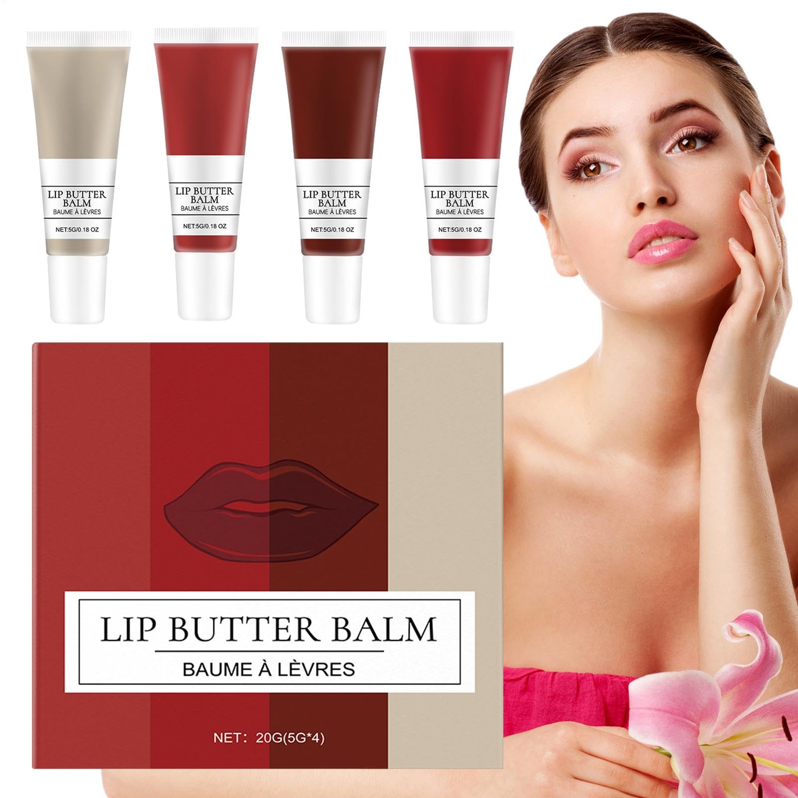 Wonderful Gift: This lip balm set is an excellent gift for Christmas, birthdays and all gift giving occasions. It is created to nourish and care for the lips and expresses best concerns and good wishes for friends, family and colleagues. Deeply hydrating formula: Infused with powerful moisturizers that penetrate deep into lip skin, resolving dryness and peeling while locking in moisture to keep lips feeling all day. Easy to carry: Get replenished and hydrated lips with our lip balm set. Its compact design allows you to take it anywhere, perfect for travel or everyday use. Keep your lips healthy and nourished whether you are outside or in the office. Soothing Lip Transformation: With a specially formulated blend of soothing ingredients, our lip balm set effectively relieves discomfort and restores vibrancy to lips. Long-term use helps reduce lip lines, resulting in a revitalized and restored appearance you will love. Effortless Shine: Our lip balm set provides a glassy, natural shine that lifts your look with just 1 touch. You don't need lip gloss, because this set provides subtle hydration so that your lips feel supple all day long. of an effortless and radiant smile.Lippenbalsemset voor meisjes, hydraterende lippenbalsem - 4-delige lipglossstick hydraterende lipcrèmeset - Kleine langdurige lipbevochtiger, anti-scheur lippenbalsem voor vrouwen, kalmeert lippenPrachtig cadeau: deze lippenbalsemset is een uitstekend cadeau voor Kerstmis, verjaardagen en alle gelegenheden om cadeaus te geven. Het is gemaakt om de lippen te voeden en te verzorgen en drukt de beste zorgen en goede wensen uit voor vrienden, familie en collega's. Diep hydraterende formule: doordrenkt met krachtige vochtinbrengende crèmes die diep in de liphuid trekken, droogheid en peeling oplossen en tegelijkertijd vocht vasthouden om de lippen de hele dag te houden. Gemakkelijk mee te nemen: van bijgevulde en gehydrateerde lippen met onze lippenbalsemset. Dankzij het compacte ontwerp kunt u hem overal mee naartoe nemen, perfect voor op reis of dagelijks gebruik. Houd uw lippen gezond en gevoed, of u nu buiten of op kantoor bent. Kalmerende liptransformatie: met een speciaal samengestelde mix van verzachtende ingrediënten verlicht onze lippenbalsemset effectief ongemak en herstelt de levendigheid van de lippen. Langdurig gebruik helpt de liplijnen te verminderen, wat resulteert in een gerevitaliseerd en hersteld uiterlijk waar u dol op zult zijn. Moeiteloze glans: onze lippenbalsemset zorgt voor een glasachtige, natuurlijke glans die je look met slechts 1 aanraking een lift geeft. Je hebt geen lipgloss nodig, want deze set zorgt voor subtiele hydratatie zodat je lippen de hele dag en soepel aanvoelen. van een moeiteloze en stralende glimlach.
