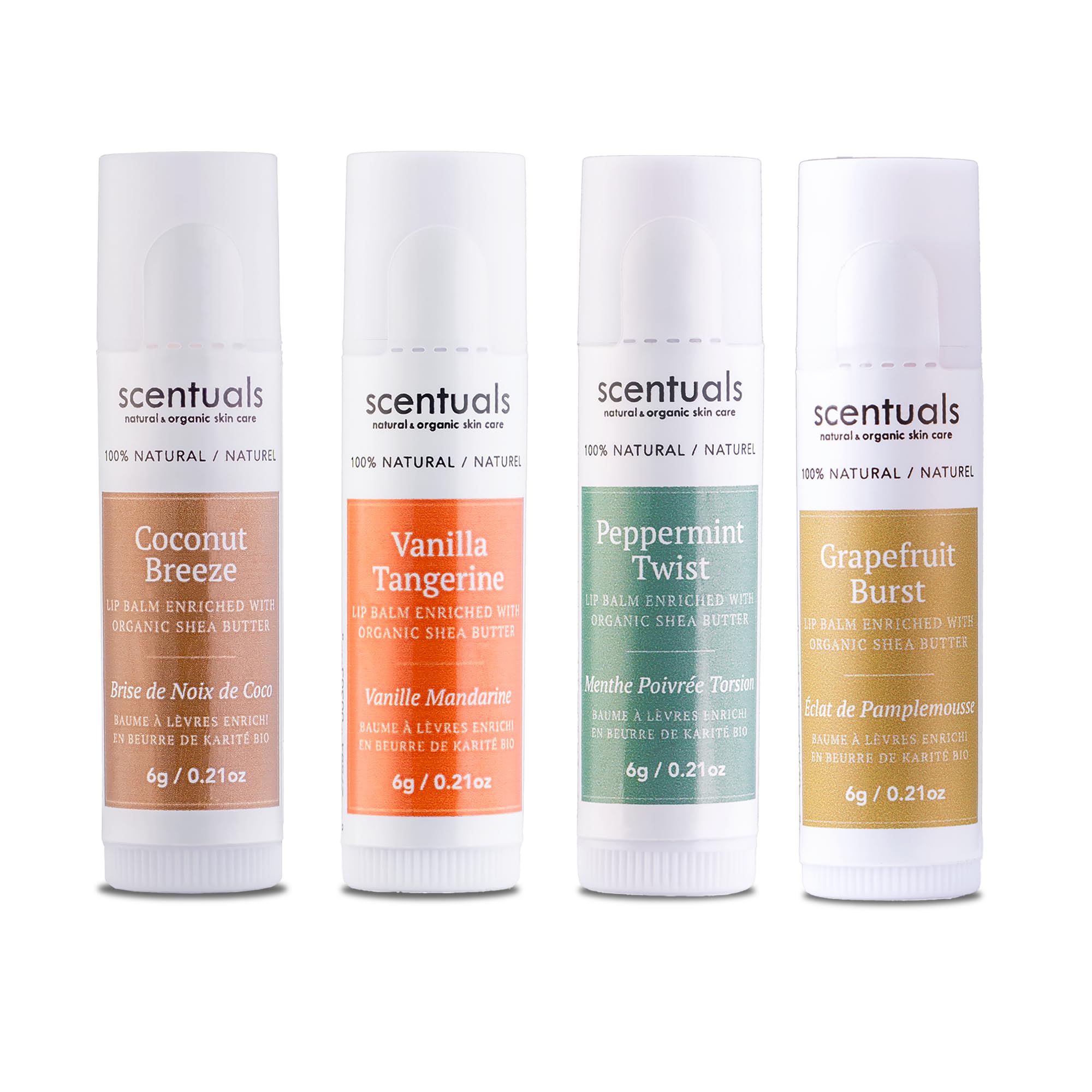 ETHICAL NATURAL CARE: Scentuals prioritizes ethical and natural practices. Our Lip Conditioner is cruelty-free, crafted with organic ingredients, and free from harmful chemicals. Experience lip care that aligns with your values and indulges your lips in luxury. NATURAL AROMA AWAKENS THE SENSES: Elevate your lip care routine to a sensory journey with our Lip Conditioner set of 4. Immerse yourself in the natural, captivating scents of vanilla and tangerine, delicately intertwined to awaken your senses. Each application becomes a moment of aromatic indulgence, uplifting your mood and enveloping you in a refreshing scent that accompanies you throughout the day. PROTECTIVE SHIELD WITH BEESWAX: Embrace the protective properties of beeswax. A natural barrier shields your lips from environmental factors, ensuring long-lasting hydration and comfort throughout the day. REJUVENATING SHEA BUTTER: Let the natural emollient properties of shea butter work their magic. This ingredient soothes and repairs damaged lips, infusing them with vitamins and antioxidants that restore their softness and youthful appearance. DEEP HYDRATION AND LASTING SOFTNESS: Reveal the secret to beautifully soft lips. Experience a transformative level of hydration that endures, thanks to an expertly crafted blend of organic shea butter, nourishing coconut oil, and rejuvenating jojoba oil. Say goodbye to dry, chapped lips as this remarkable formula provides lasting moisture, leaving your lips feeling irresistibly supple and comforted.