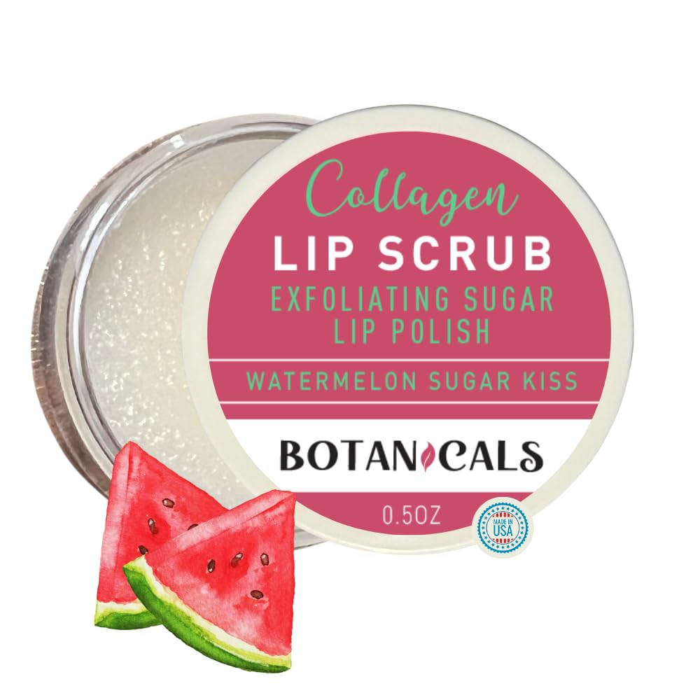 Botanicals Lip Exfoliator Scrub and Moisturizer – Watemelon Sugar Kiss Fruit Flavor, Sugar Lip Scrub for Dark Lips, Dryness, and Overnight Hydration – For Men Women, Made in the USA reat your lips to the care they deserve with Botanicals Lip Exfoliator Scrub and Moisturizer, a dual-action lip scrub and moisturizer designed to buff away dead skin, soften dark lips, and deeply hydrate overnight. Formulated with natural sugar crystals, nourishing oils, and a tropical coconut fruit flavor, this gentle exfoliator helps reveal smoother, softer, more even-toned lips with every use. Perfect for dry, chapped, or pigmented lips, this clean beauty must-have works for all skin tones and is great for both men and women looking for an easy lip care solution. For Men Women – A non-greasy, unisex formula suitable for all lip types. Tropical Coconut Fruit Flavor – Subtle, refreshing scent adds a touch of indulgence to your skincare routine. USE INSTRUCTIONS: Gently massage a small amount onto clean lips in circular motions, wipe off or rinse, or leave on overnight for deep hydration for external use only.
