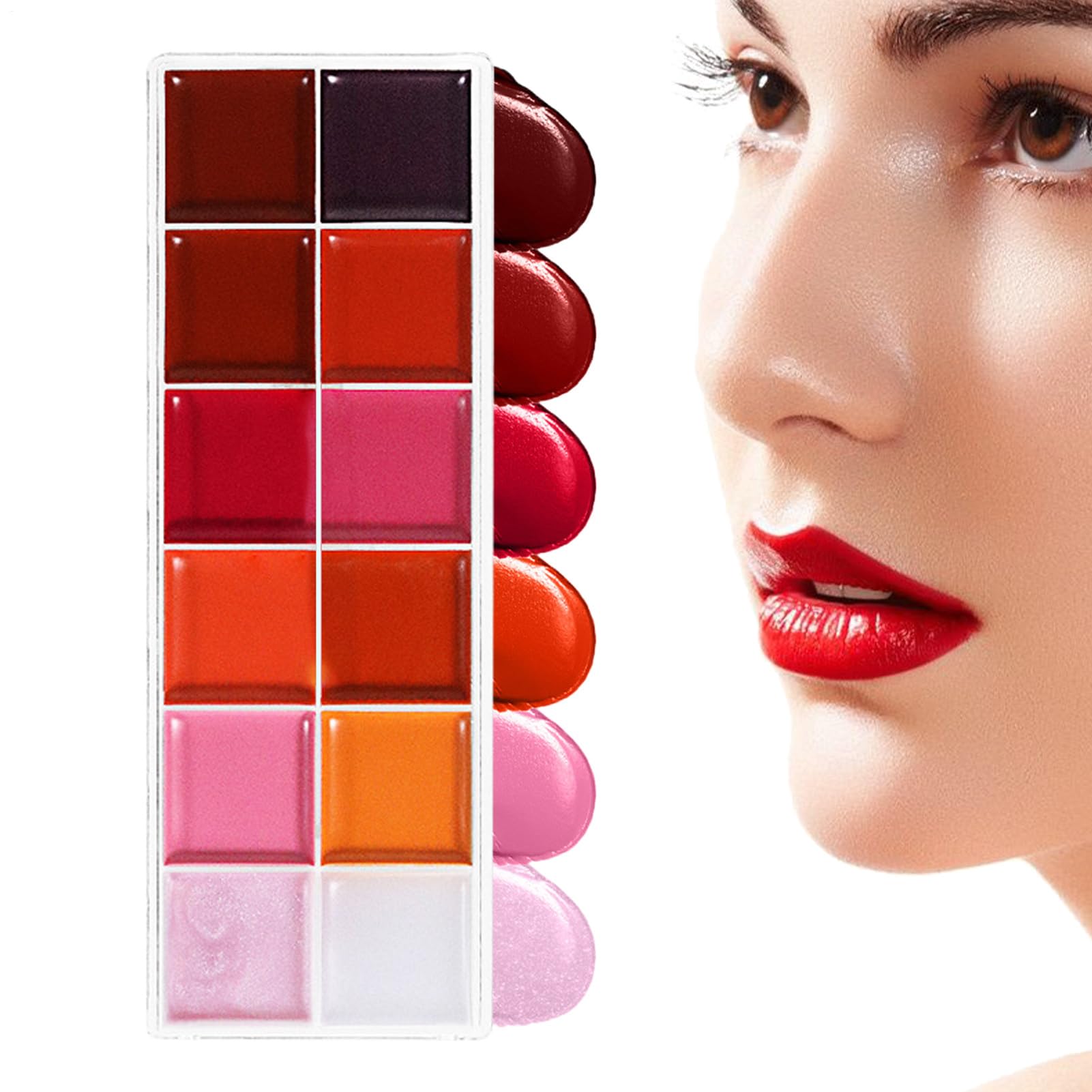 Discover a dazzling range of twelve highly pigmented and vibrant shades in this portable lipstick palette. Designed for women, girls, and teens, its long-lasting, waterproof formula delivers exceptional color intensity with a moisturizing touch. Ideal for getaways or everyday wear, this compact palette will quickly become a staple in your beauty routine. Explore endless possibilities with shades for every occasion. Lip Gloss Palette List: 1 piece lip gloss palette Note: Due to different lighting and screen settings, the item's color may be slightly different from the picture. Due to different manual measurements, please allow a 1-2 cm size difference. SAFETY WARNING Not applicable