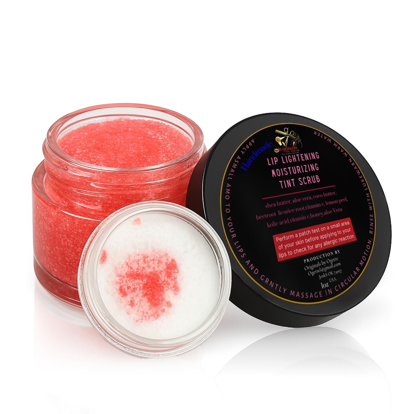 ELevate your lip care with our lip lightening moisturizing lip scrub, exclusively at originals by Ogette . The handmade formula combines potent ingredients such as kolic acid ,vitamin c,vitamin e and licorice root to naturally lighten and nourish your lips. Enriched with aloe Vera, beetroot and lemon peel, it provides gentle exfoliation while stearic acid, Shea butter and coco butter deeply moisturize and protect.trust in our commitment to natural beauty and experience revitalized,softer lips . Embrace the care and quality that originals by Ogette stands for, where your beauty is naturally enhanced.