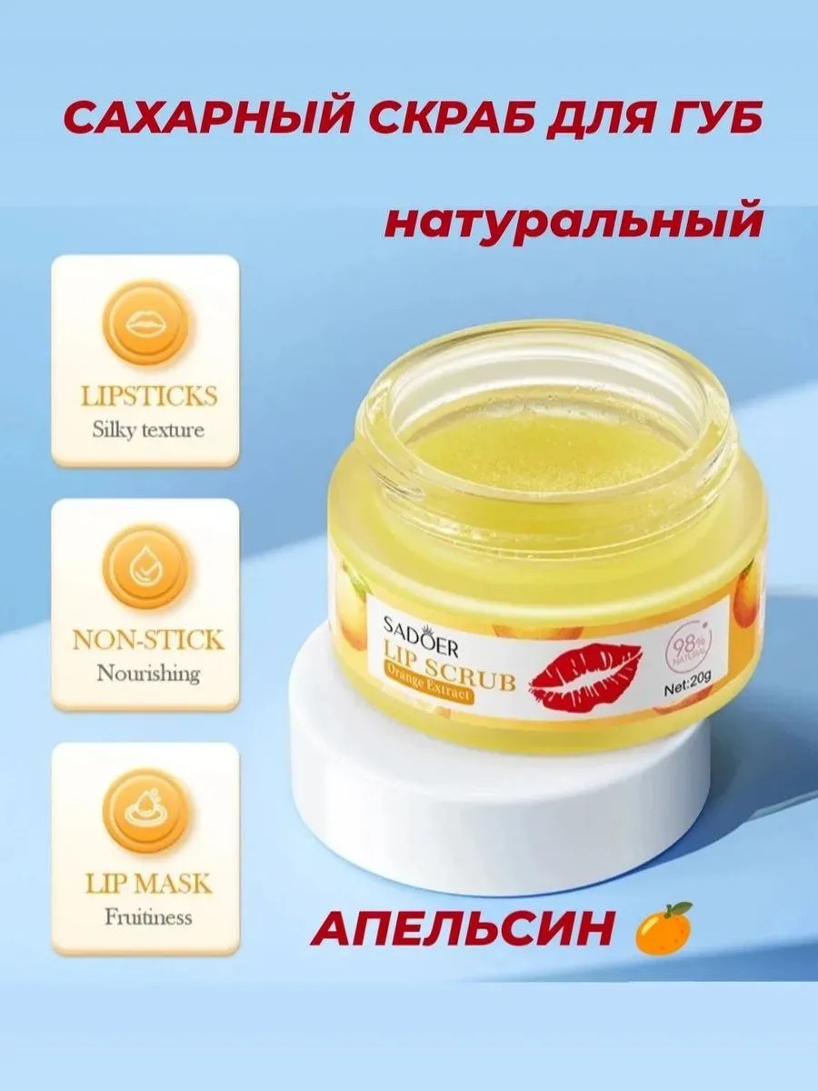 Натуральный сахарный скраб с экстрактом апельсина - это органическое натуральное средство, которое бережно ухаживает за вашими губами.
