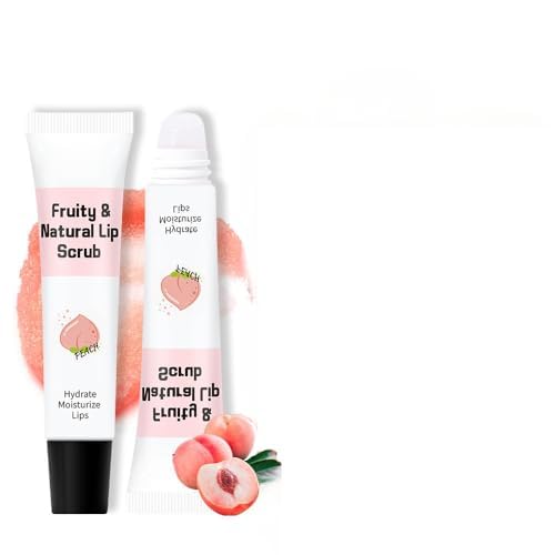 Lip Scrub Gentle Exfoliator Hydrating Scrub for Lip Prep Moisturizing Lip Care Organic Fruit Lip Scrub Balm For Lightening & Brightening Dark Lips Overnight Hydration & Moisturizer (Peach)
