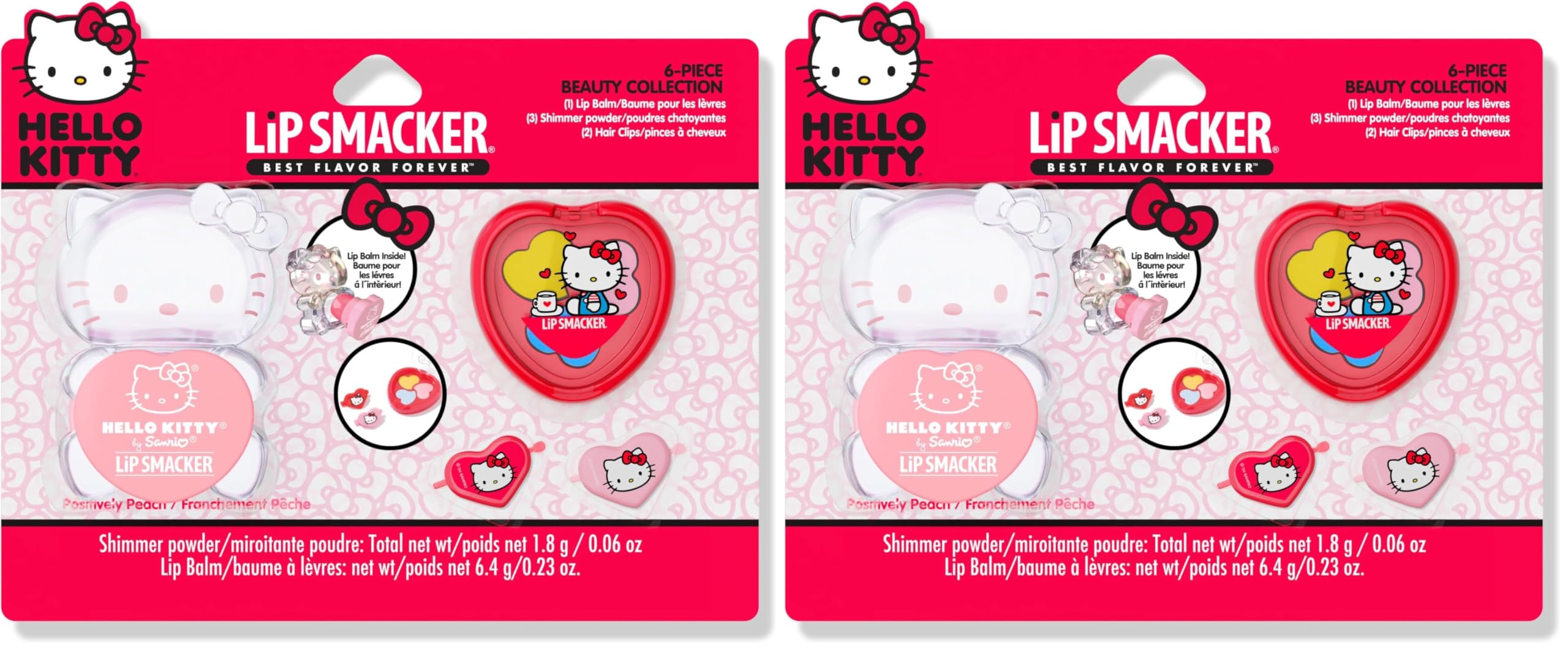 Lip Smacker Hello Kitty Beauty Set Includes Pigment Palette Lip Balm & Hair Barrettes Fun & Collectible Sanrio Gift for Kids and Fans (Pack of 2)