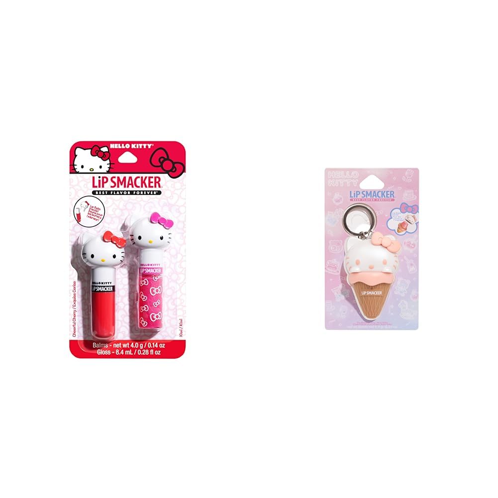 Lip Smacker Hello Kitty Lip Balm Duo - Cheerful Cherry & Kiwi Flavored with Ice Cream Cone Keychain