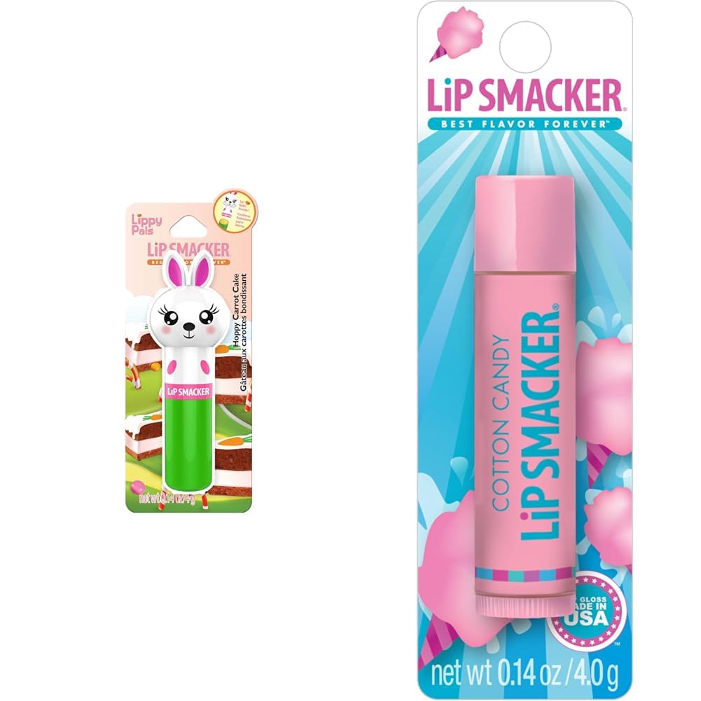 Lip Smacker Lippy Pals Bunny Rabbit Carrot Cake & Cotton Candy Flavored Lip Balms Moisturizing & Smoothing Soft Shine Hydrating & Protecting