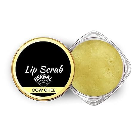 Lip Sugar Scrub Herbal Natural Essential Oils Exfoliating Balm Polish Scrubber for Men Women Smoked Dry Dark Chapped Lips to Lighten Pigmentation Dead Skin Tan Removal (10-gm) (Cow Ghee).