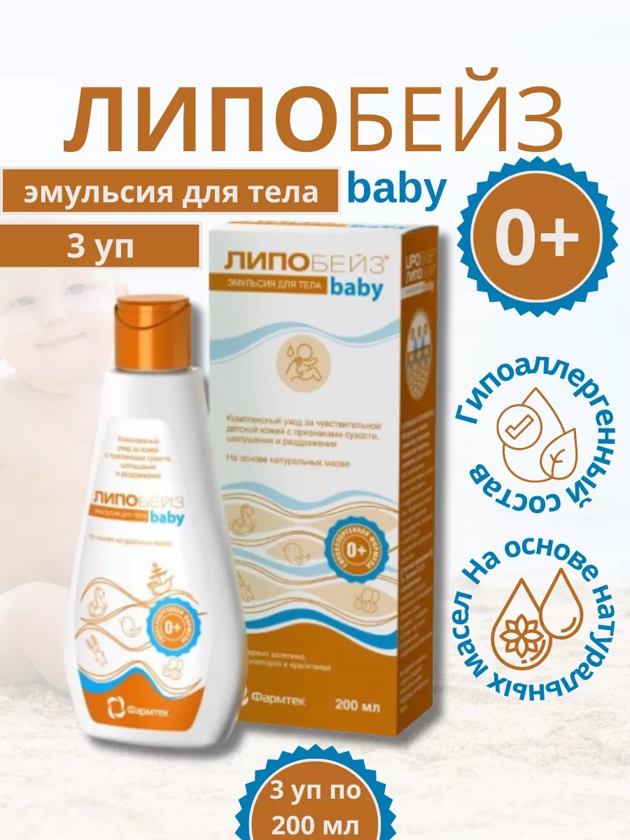 | Комплектация | Липобейз беби эмульсия детская для тела 200 мл; 3 упаковки |