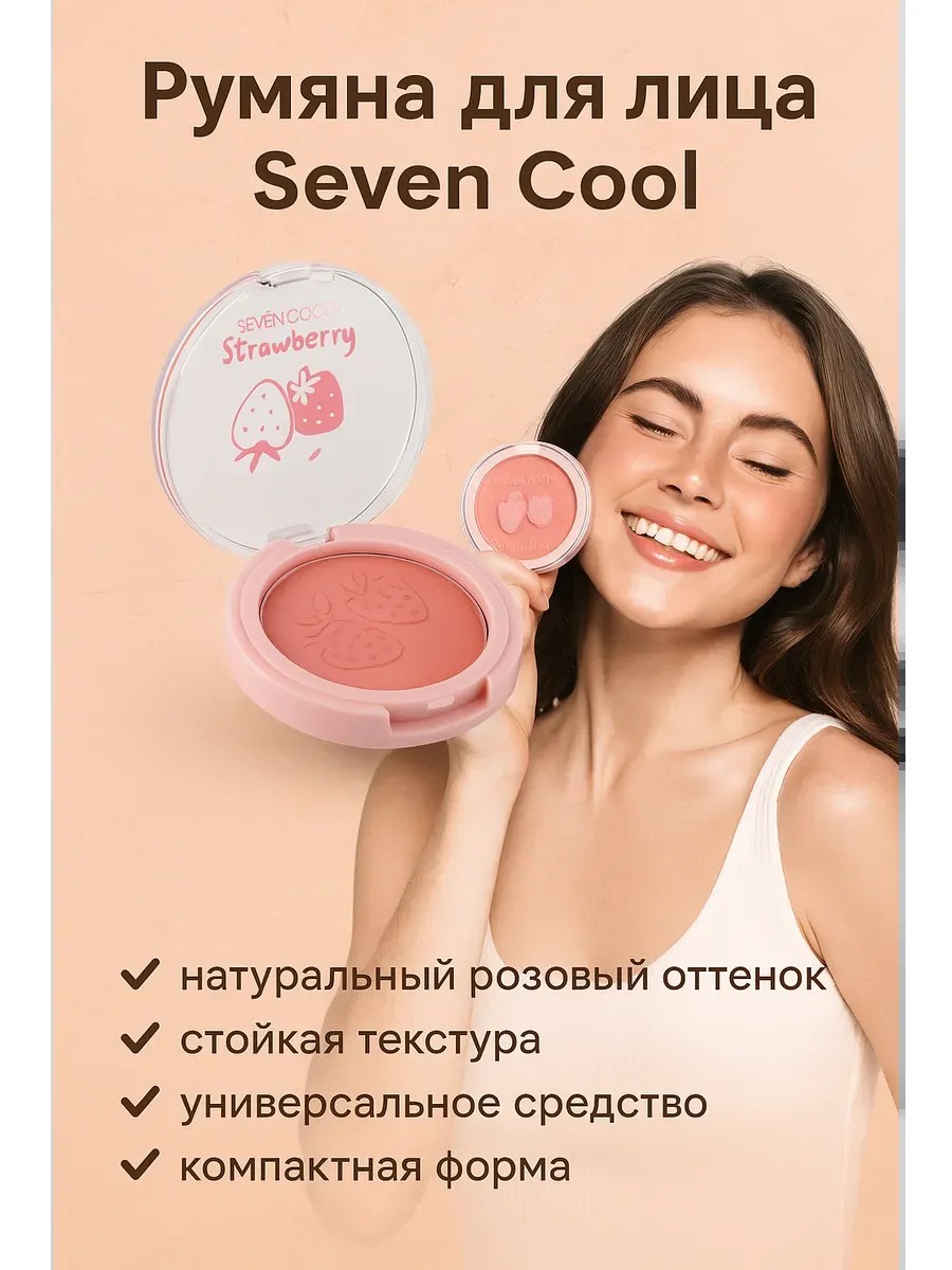 Румяна SEVENCOOL с клубничным тиснением — натуральное сияние и свежесть щёк!