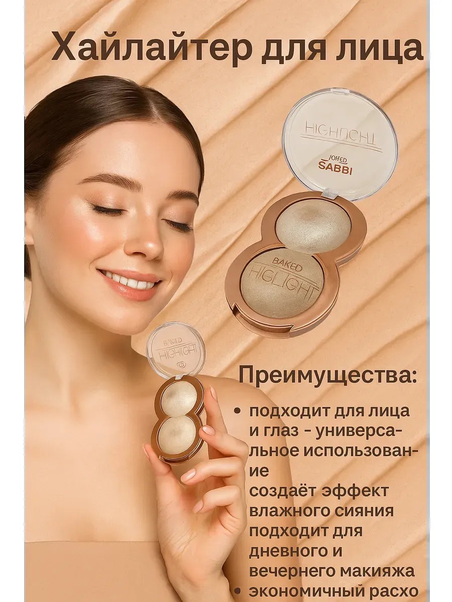 Благодаря запечённой формуле, хайлайтер обладает высокой пигментацией и стойкостью — макияж держится до 12 часов без осыпания.