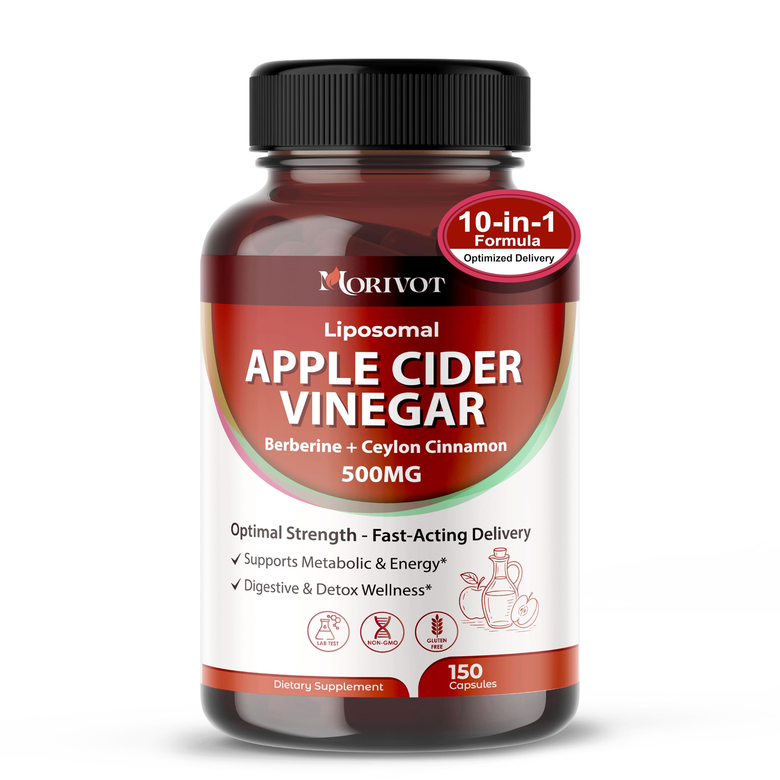Daily eating habits and busy routines can affect natural energy, digestive comfort, and overall metabolic balance. This liposomal Apple Cider Vinegar formula offers simple, everyday support for metabolic wellness, digestive harmony, and natural detox processes. Metabolic Energy Support Apple Cider Vinegar, Berberine, and Chromium help support natural metabolic activity and steady daily energy. Digestive Detox Wellness Ginger, Cayenne, Turmeric, and Lemon Balm support smooth digestion and the body's natural detox processes for daily comfort. Balanced Daily Wellness Ceylon Cinnamon and Gymnema help promote internal balance and overall vitality as part of your routine. Each ingredient is selected for a complementary role, enhanced with liposomal delivery to support absorption and consistent daily benefit. Manufactured in a GMP-certified, Non-GMO facility and free from common allergens, this formula provides clean, reliable support you can trust. Choose Morivot for simple, steady metabolic and digestive wellness—crafted with care, backed by science.150 Capsules — Easy, Consistent Daily Routine : With one capsule per day and a full 150-day supply, this bottle offers long-lasting value and simple, consistent metabolic and digestive support. . Clean-Label Liposomal Formula You Can Trust : Made in a GMP-certified, Non-GMO facility and free from common allergens, this formula is crafted without unnecessary fillers for reliable daily support. . Balanced Internal Wellness with Ceylon Cinnamon : Ceylon Cinnamon and Gymnema contribute to internal balance and overall vitality, supporting a grounded, stable sense of wellness throughout the day. . Digestive Comfort Gentle Detox Support : A thoughtful blend of Ginger, Cayenne, Turmeric, and Lemon Balm helps support smooth digestion and the body's natural detox processes for everyday comfort. . Supports Metabolic Balance Daily Energy : Apple Cider Vinegar, Berberine, and Chromium work together to support natural metabolic activity, steady day-to-day energy, and balanced wellness—ideal for busy lifestyles. .