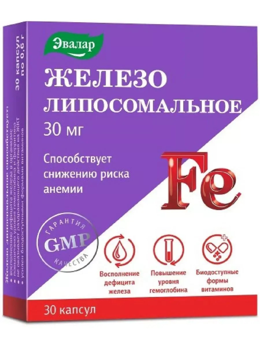 Железо липосомальное эвалар 30 шт. капсулы массой 0,6 -2 шт.