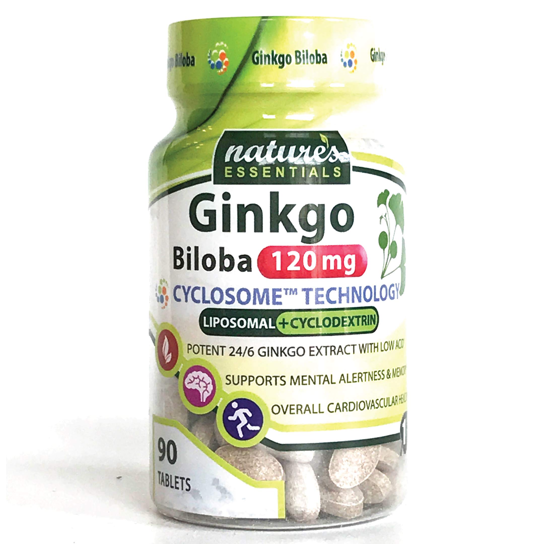 The leaves from the Ginkgo Biloba tree have been used in Chinese medicine for thousands of years. Ginkgo is used to help with memory, brain function, cognitive speed, improved circulation to the extremities, and to fight free radicals in the body. Nature's Essentials Ginkgo Biloba is a potent extract with low acid enhanced with advanced Cyclosome delivery technology that encompasses the naturally derived Ginkgo Biloba into a liposome with cyclodextrin to create enhanced solubility for optimal bioavailability. This Ginkgo complex uses naturally simple ingredients and scientifically advanced delivery technology which increases the body's ability to ABSORB MORE of the good stuff. These statements have not been evaluated by the FDA. This product is not intended to diagnose, treat, cure or prevent any disease. For cognitive enhancement, take 120-240mg, one to four hours before performance. To alleviate cognitive decline in older adults, take 40-120mg, one to three times a day.NO Artificial Color or Flavoring, Fish, Gluten, Lactose, Milk, Preservatives, Sodium, Lactose, Milk, Preservatives, Sodium, Starch, Sugar, Sweetener, Wheat, Yeast. BENEFITS OF LIPOSOMAL GINKGO Supports Mental Alertness, Memory Cardiovascular Health. OPTIMAL PURITY: Using one of the highest quality Ginkgo Biloba ingredients available in the world with Low-Acid for a superior quality product. MAXIMUM POTENCY 24 6 Ginkgo Biloba Extract most commonly used in clinical studies across the world. ABSORB MORE The most bioavailable Ginkgo Biloba on the Market with Liposomal Cyclodextrin technology. Nature's Essentials offers maximum absorption and optimal bioavailability. (Not all Ginkgo Biloba is created equally, this natural formula utilizes pharmaceutical techniques to stabilize and increase bioavailability of the natural ingredient through digestion so it can be absorbed better in the intestines and cells).