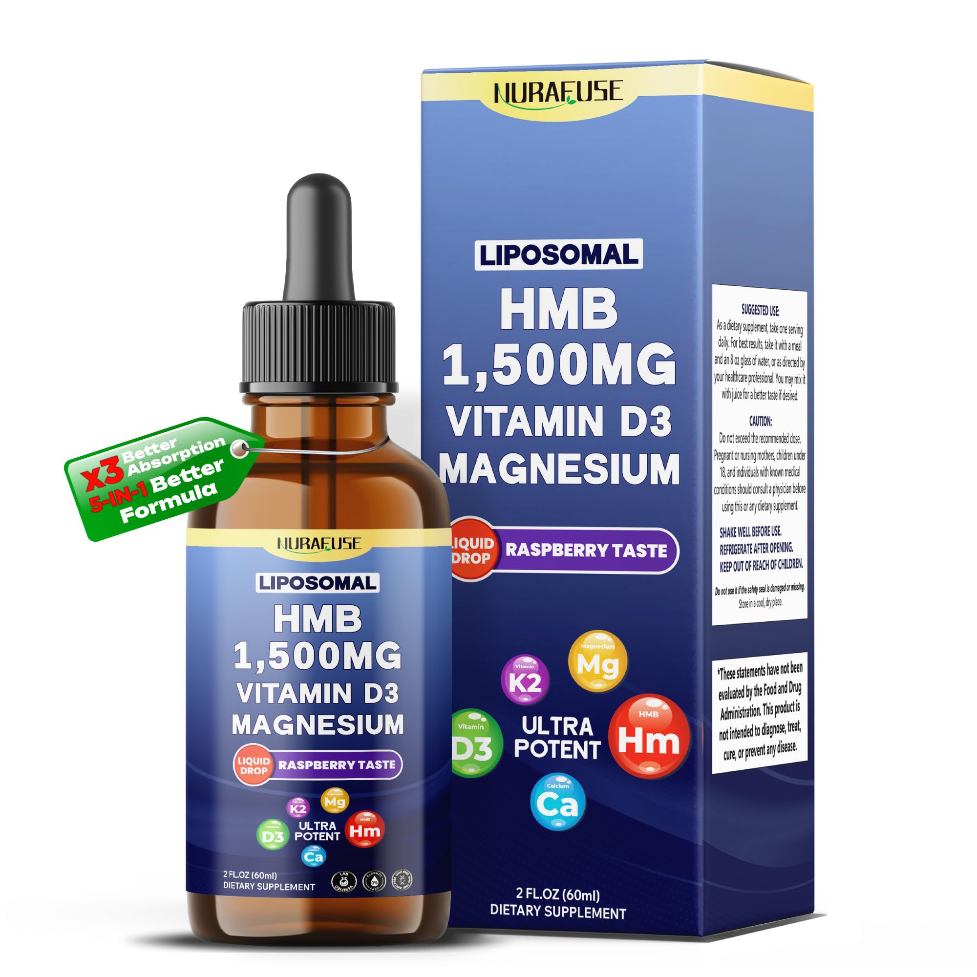 Vitamin D3, K2, Calcium, and Magnesium, supports muscle strength, endurance, and active recovery, helping you stay active and resilient. With advanced liposomal delivery for better absorption, you get the most from every drop. And with a refreshing raspberry taste, it’s a simple, delicious way to support your daily wellness, straight from the dropper or mixed into your favorite drink.Convenient, Delicious, and Clean: Enjoy the refreshing raspberry taste of this liquid formula – perfect for those who prefer an easy alternative to pills. Take it straight or mix it into your favorite drink for a simple, enjoyable part of your daily routine. Premium Quality You Can Trust: Proudly made in the USA in a cGMP-certified facility, our liquid drops contain only high-quality. No artificial additives, fillers, or preservatives – just pure, potent support for your wellness journey. Choose the best for your body. Superior Absorption with Liposomal Delivery: Liposomal technology enhances the absorption of each active, ensuring you get the maximum benefit from every drop, experiencing quicker muscle growth and recovery. Support Muscle Strength and Endurance: Combines HMB,
