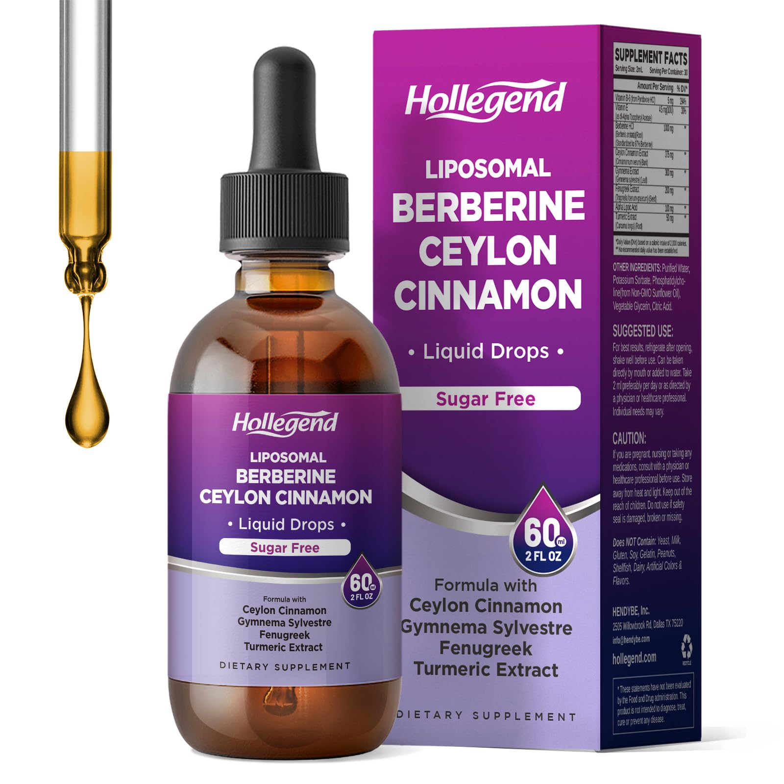 Our Berberine drops for adults are made in a GMP-certified facility, ensuring the highest quality standards. They are gluten-free, soy-free, non-GMO, natural, and vegan. Compared to most Berberine supplements, our berberine with Ceylon Cinnamon drops not only use liposomal technology but also feature a sugar-free formula. This means you only need 2ml per day to meet your daily nutritional needs—without worrying about excessive sugar intake. Our Berberine supplement uses advanced liposomal technology, putting Berberine and other key ingredients in lipid spheres to enhance bioavailability by up to 98 and ensure efficient delivery with every dose. This premium formula of berberine liquid combines with Ceylon Cinnamon, Gymnema, Fenugreek, alpha-lipoic acid, and Turmeric Extract to support digestive health and the immune system. By using this berberine supplement, you can get enough daily needs. Our liposomal berberine drops, paired with a blend of essential vitamins, work together to boost immunity by offering antioxidant support, supporting gut health, and making it a great addition to your daily routine.