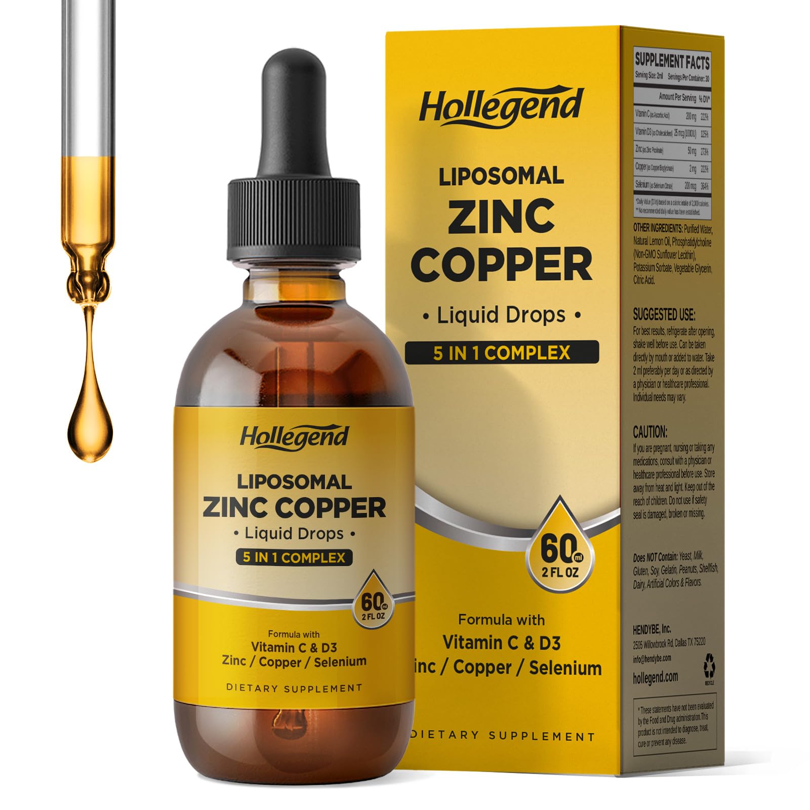Clean Natural: This zinc copper selenium supplement tincture is made with clean ingredients you can trust—non-GMO, gluten-free, vegan, GMP-certified, and third-party lab tested, free from artificial colors or preservatives. Natural Flavor, Family-Friendly: Deliciously natural blueberry flavor, with zero mineral aftertaste! Hollegend organic ionic zinc copper drops are perfect for the whole family—2 mL for adults, 1 mL for kids 4 , simple and convenient for daily use. Liposomal Delivery for Better Absorption: Liposomal technology supports gentle, efficient nutrient absorption, helping Vitamin C, Vitamin D3, and key minerals be absorbed more effectively—easy on the stomach. Advanced Immune Support: Packed with 50 mg Zinc Picolinate, 200 mg Vitamin C, and 1000 IU Vitamin D3, this advanced liquid formula delivers powerful daily immune support and overall wellness in a highly absorbable form. 3X Premium Mineral: Formulated with a precise combination of zinc picolinate, copper bisglycinate, and selenium to help maintain balanced mineral levels while supporting immune function, antioxidant defense, and thyroid health.