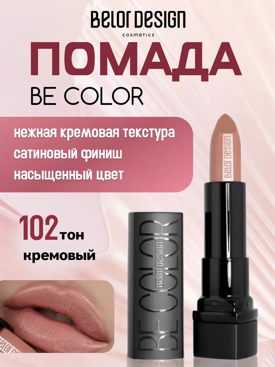 Губная помада BE COLOR с нежной кремовой текстурой имеет насыщенный цвет и глянцевый блеск, обладает плотным покрытием. Содержит белый пчелиный воск, канделлильский и карнаубский воски, масло жожоба, касторовое масло и витамин Е для питания и увлажнения. Невероятно комфортна на губах.
