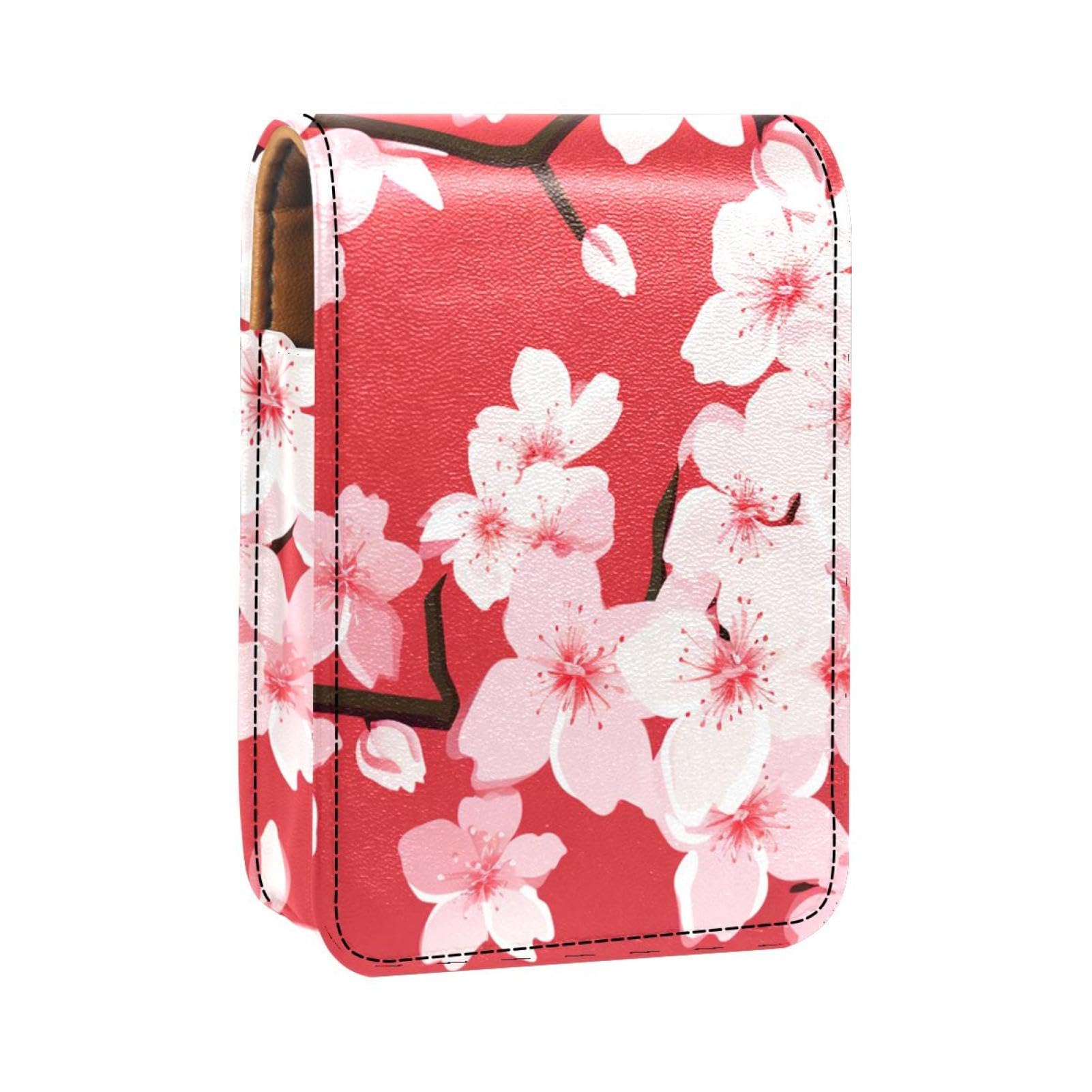 Lipstick Case Leather Lip Gloss Lipstick Organizer with Mirror Mini Lipstick Holder Bag Cherry Blossoms Q936n9pplu