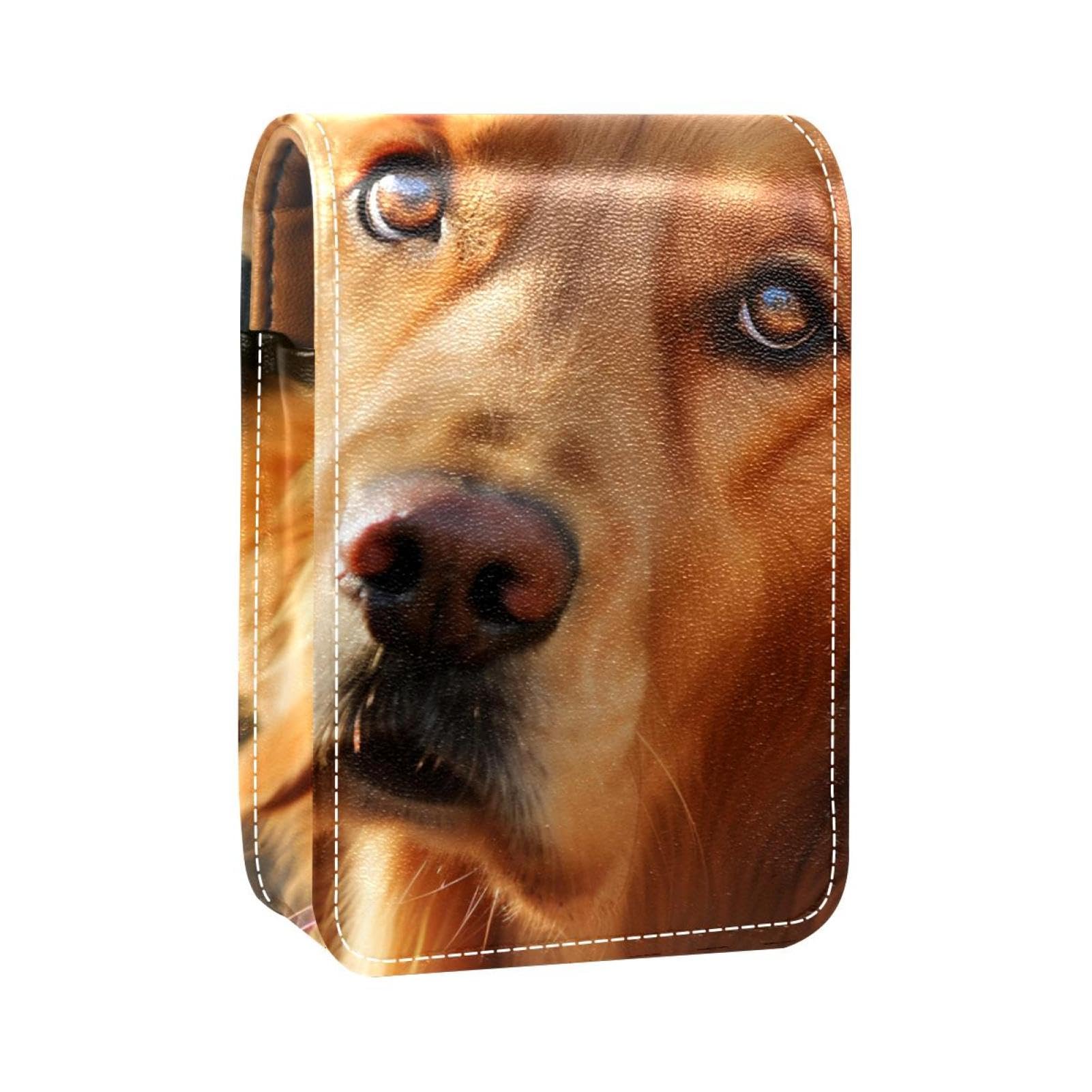 Lipstick Case Leather Lip Gloss Lipstick Organizer with Mirror Mini Lipstick Holder Bag Dog Golden Retriever D876w6eobs
