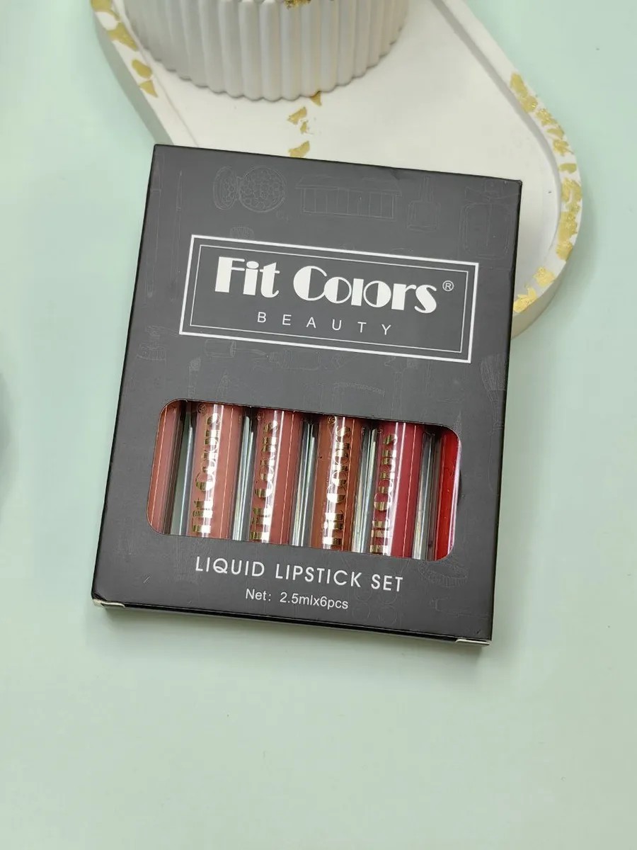 The FIT Colors Matte Lip Gloss Set is a 6-piece lip gloss set perfect for those who love long-lasting makeup without dry lips. This weightless liquid matte lipstick is universally suitable for all skin types, enveloping lips in a delicate yet rich veil of color that dries to a matte finish. The lipstick has a liquid, non-sticky, long-wearing texture that's easy to apply, long-lasting, non-drying, feather-resistant, and doesn't crease or flake. The expressive, deep shade accentuates the shape of your lips, giving them a rich, vibrant look. This long-lasting matte lipstick applies easily and evenly, doesn't crease, bleed, or fade.