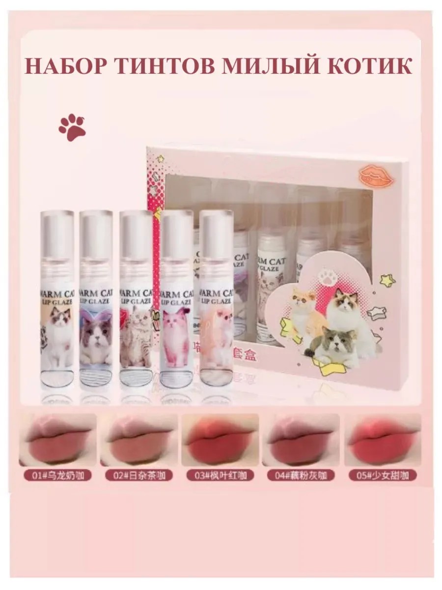 помада для губ набор тинтов 5 штук с котятами