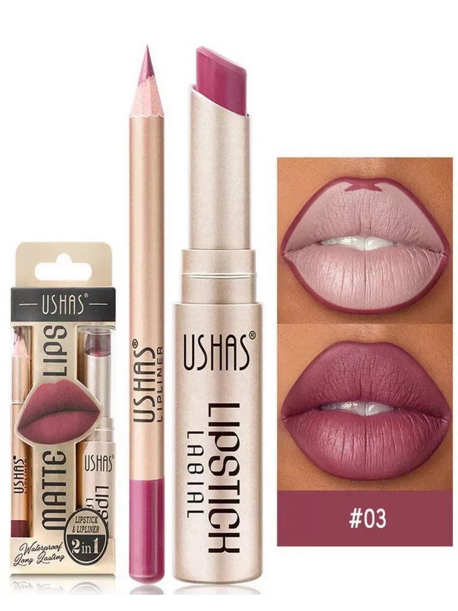 Помада матовая и карандаш для губ, увлажняющая, стойкая