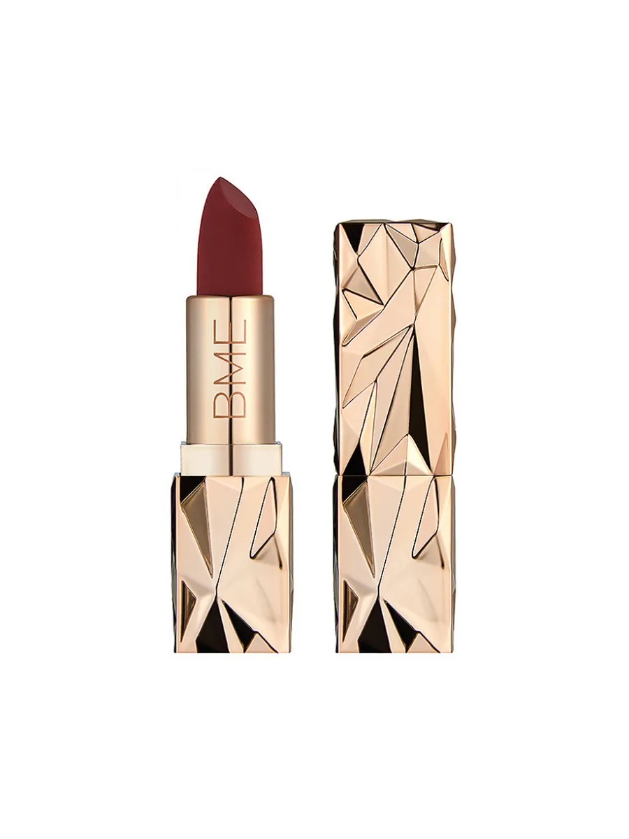 This lipstick envelops lips in deep, rich color, creating a matte finish that gently melts into the skin.