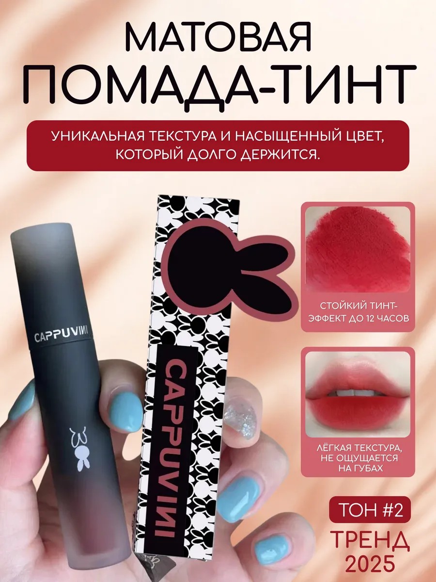 This lipstick tint has a medium staying power (not super long-lasting). The delicate texture glides smoothly on the skin, applies evenly, and creates a soft matte finish without stickiness or film. You can use a lip liner, lip gloss, liquid balm, lip mask, or Vaseline before applying. Chinese cosmetics tints are ideal for Korean and K-pop-inspired makeup. This mousse tint is available in the most fashionable colors. Transform your look with our highly pigmented matte lipstick tints. To create a Korean-style makeup look, apply a small amount of product to the center of your lower lip, closer to the inner edge, and blend – your bright and luscious smile is ready to conquer the world.