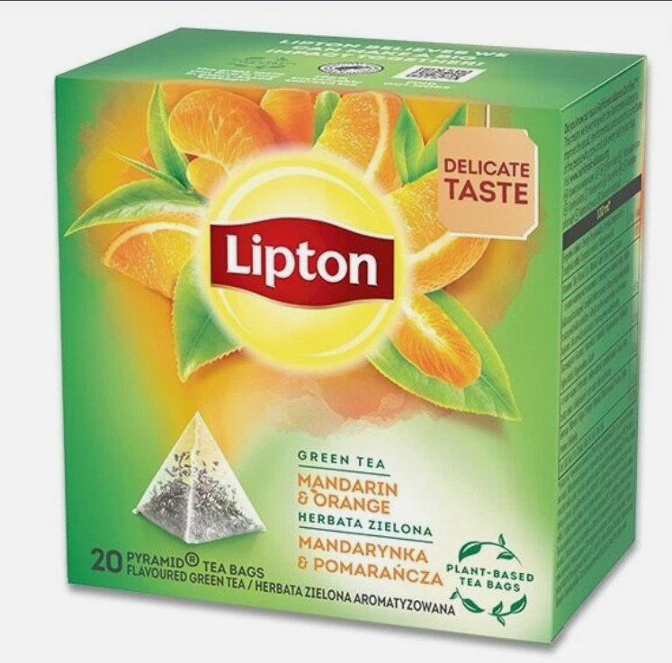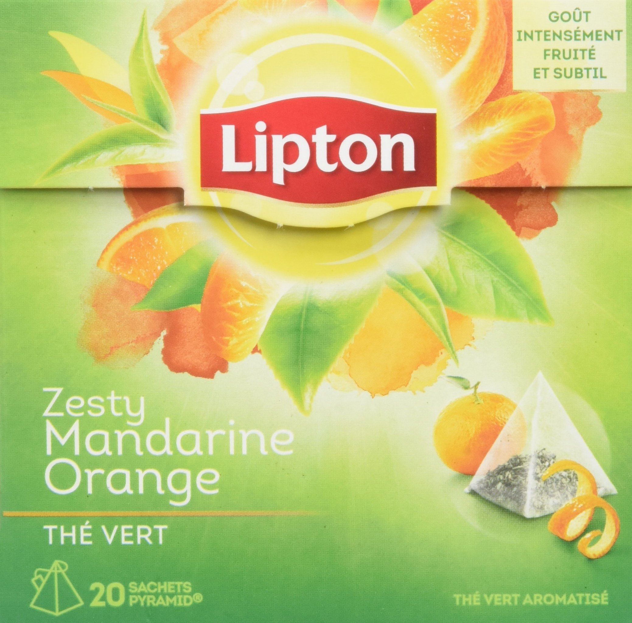 Young tea leaves, carefully selected to obtain a light taste without bitterness, combined with mandarin and orange peels, an ideal union revealed by our Pyramid sachets. Each perfume expresses itself freely. Let yourself be carried away by this delicious combination. Since 2003, Lipton has offered the Pyramid sachet, an innovative sachet that offers more space for tea leaves and fruits and allows better infusion for a more intense taste. Leave to infuse for 2-3 minutes in 200mL of water at 90 for ideal tasting. Our History: When Sir Thomas Lipton founded his company in the late 19th century, he purchased his first tea plantation in Ceylon (Sri Lanka). More than a hundred years later, Lipton owns thousands of hectares of quality tea plants in East Africa. Built on over a century of experience growing and blending tea, Lipton has retained Sir Thomas's love of innovation and excellence. Lipton is based on solid values inspired by its founder Sir Thomas Lipton: naturalness, optimism and dynamism. A modern brand far removed from the traditional codes of "tea-time", Lipton has based its success on the development of a "tasting experience" in which consumption can experience moments of shared pleasure, discovery and conviviality. More than a hundred years of success and innovation have enabled Lipton to bring more tea enjoyment to more people around the world. In this spirit of inventiveness, research and discovery, Lipton helps people discover the benefits of brewed tea, black or green. In total, Lipton has nearly 80 references of teas and infusions in France. All Lipton tea comes from Rainforest Alliance verified plantations for tea that is more respectful of growers and the environment. Lipton is committed to supporting smallholder farmers through its sustainable policy. Study conducted by Synovate with 200 consumers (France, 2010). INGREDIENTS green tea, flavoring (14 ), mandarin peel (2.9 ), orange peel (2.9 ). DIRECTIONS FOR USE Leave to infuse in 200mL of water at 90 for 2-3 minutes SAFETY WARNING Contains caffeine. Not recommended for children or pregnant women. PEFC Certified: The cardboard in this box comes from sustainably managed forests and controlled sources. Tea from Rainforest Alliance Verified plantations applying sustainable development principles. Fully verified. Steep in 200mL of 90 C water for 2-3 minutes. 20 Pyramid tea bags. Mandarin orange flavor. Green tea. De jeunes feuilles de thé, sélectionnées avec soin pour obtenir un goût léger et sans amertume, mariées aux écorces de mandarine et d'orange, une union idéale révélée par nos sachets Pyramid. Chaque parfum s'exprime ainsi librement. Laissez-vous emporter par cette délicieuse alliance. Depuis 2003, Lipton propose le sachet Pyramid, un sachet innovant qui propose plus d'espace pour les feuilles de thé et les fruits et permet une meilleure infusion pour un goût plus intense. Laisser infuser 2-3mn dans 200mL d'eau à 90 pour une dégustation idéale. Notre histoire : Quand Sir Thomas Lipton fonda sa société à la fin du 19ème siècle, il acheta sa première plantation de thé à Ceylan (Sri Lanka). Plus de cent ans après, Lipton possède des milliers d'hectares de théiers de qualité en Afrique orientale. Bâti sur une expérience de plus d'un siècle en matière de culture et de mélange de thé, Lipton a conservé l'amour de Sir Thomas pour l'innovation et l'excellence. Lipton s'appuie sur des valeurs solides inspirées par son fondateur Sir Thomas Lipton: naturalité, optimisme et dynamisme. Marque moderne et éloignée des codes traditionnels du « tea-time », Lipton a fondé son succès sur le développement d'une « expérience de dégustation » dans laquelle la consommation pourra connaître des moments de plaisirs partagés, de découvertes et de convivialité. Plus de cent ans de réussites et d'innovations ont permis à Lipton d'apporter davantage de plaisir autour du thé à plus de personnes dans le monde. Dans cet esprit d'inventivité, de recherche et de découverte, Lipton contribue à faire découvrir les bienfaits du thé infusé, noir ou vert. En tout, Lipton comptabilise près de 80 références de thés et infusions en France. La totalité du thé Lipton provient de plantations vérifiées Rainforest Alliance pour un thé plus respectueux des cultivateurs et de l'environnement. Lipton s'est engagé à soutenir les petits exploitants agricoles à travers leur politique durable. Etude menée par Synovate auprès de 200 consommateurs (France, 2010). INGRÉDIENTS thé vert, arôme (14 ), écorces de mandarine (2,9 ), écorces d'orange (2,9 ). MODE D'EMPLOI A laisser infuser dans 200mL d'eau à 90 pendant 2-3 minutes AVERTISSEMENT DE SÛRETÉ Contient de la caféine. Ne pas recommander aux enfants ou aux femmes enceintes. Certifié PEFC : Le carton de cette boîte est issu de forêts gérées durablement et de sources contrôlées. Thé issu de plantations vérifiées Rainforest Alliance appliquant des principes de développement durable Entièrement vérifié. A laisser infuser dans 200mL d'eau à 90 pendant 2-3 minutes. 20 sachets Pyramid. Aromatisé mandarine orange. Thé vert.