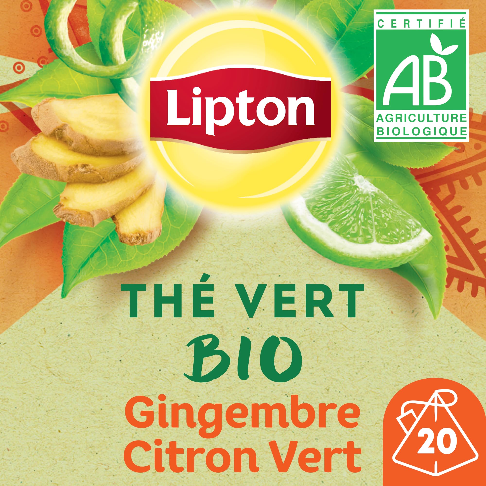 DESCRIPTION DU PRODUIT DESCRIPTION DU PRODUIT Lipton vous propose un délicat thé vert associé aux notes fraîches du gingembre et du citron vert pour un thé au goût riche et exotique, naturellement délicieux Les feuilles de thé ont été cueillies dans des plantations certifiées Agriculture Biologique, n'utilisant pas de pesticides de synthèse Et comme tous les thés Lipton, il est 100 responsable car vérifié Rain Forest Alliance INGRÉDIENTS Ingrédients thé vert de Chine¹¯² (91 ), arôme naturel de citron vert et gingembre, gingembre² (2 ), écorces de citron vert² (2 ), ). ¹Certifié Rainforest Alliance. ²Ingrédients issus de l'agriculture biologique. MODE D'EMPLOI Pour 100ml, pour 1 sachet infusé 2 minutes dans 200ml d'eau à 90 C (sans sucre). AVERTISSEMENT DE SÉCURITÉ Aucun avertissement Voir plus