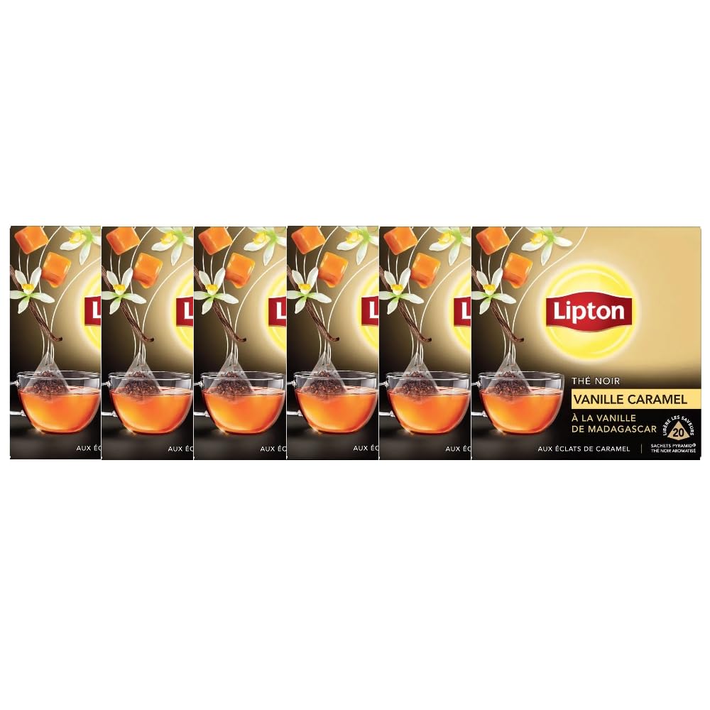 Lipton, Thé Noir Vanille Caramel, Goût Frais et Equilibré, Thé Noir 100 d'Origine Naturelle, Vitalité, 6x20 sachets, 120 Sachets