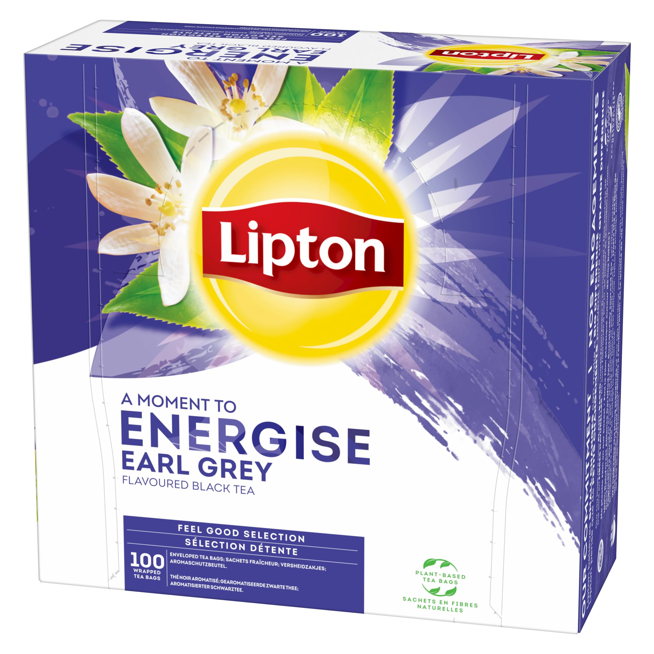 Discover our 100 bags of Lipton Feel Good Selection Earl Gray Black Tea, a delicious black tea with notes of bergamot orange to wake you up and have energy throughout the day. Wake up in the morning with the energizing flavor of Lipton Earl Gray tea. Immerse your senses with the citrus scent of bergamot orange and a carefully selected blend of black teas. The black tea leaves in this box were picked from Rainforest Alliance certified plantations and carefully selected to offer you high quality tea. Then the mixture is carefully packaged in natural fiber tea bags. Our story: When Sir Thomas Lipton founded his company in the late 19th century, he purchased his first tea plantation in Ceylon (Sri Lanka). More than a hundred years later, Lipton owns thousands of hectares of quality tea plants in East Africa. Built on over a century of experience growing and blending tea, Lipton has retained Sir Thomas's love of innovation and excellence. A modern brand far removed from the traditional codes of "tea time", Lipton has based its success on the development of a "tasting experience" based on moments of shared pleasure, discovery and conviviality. INGREDIENTS Black tea , flavors (7.1 ) DIRECTIONS FOR USE Let your black tea bag steep for 2 minutes in 200 ml of hot water at 90 C and enjoy! Our boxes have no plastic overwrap, they are fully recyclable, and their cardboard comes from sustainably managed forests. Our tea bags are made from natural fibers. For optimal enjoyment, steep your black tea bag for 2 minutes in 200 ml of hot water at 90 C and enjoy! This delicious blend of black tea has been carefully selected and crafted to deliver a refreshing taste with every sip. You will undoubtedly be invigorated by its floral aroma. Wake up in the morning with the energizing flavor of Lipton Earl Grey tea. Delight your senses with the citrus scent of bergamot orange and a carefully selected blend of black teas. Discover our 100 Lipton Feel Good Selection Earl Grey Black Tea Bags, a delicious black tea with notes of bergamot orange to wake you up and feel energized throughout the day. Découvrez nos 100 sachets de Thé Noir Earl Grey Feel Good Selection Lipton, un délicieux thé noir avec des notes d'orange bergamote pour se réveiller et avoir de l'énergie tout au long de la journée. Réveillez-vous le matin avec la saveur énergisante du thé Earl Grey de Lipton. Émerveillez vos sens avec le parfum d'agrume de l'orange bergamote et un mélange soigneusement sélectionné de thés noirs. Les feuilles de the noir présentes dans cette boîte ont été cueillies dans les plantations certifiées Rainforest Alliance et sélectionnées avec attention pour vous offrir du thé de grande qualité. Puis le mélange est soigneusement emballé dans des sachets de thé en fibres naturelles. Notre histoire : quand Sir Thomas Lipton fonda sa société à la fin du 19? siècle, il acheta sa première plantation de thé à Ceylan (Sri Lanka). Plus de cent ans après, Lipton possède des milliers d'hectares de théiers de qualité en Afrique orientale. Bâti sur une expérience de plus d'un siècle en matière de culture et de mélange de thé, Lipton a conservé l'amour de Sir Thomas pour l'innovation et l'excellence. Marque moderne et éloignée des codes traditionnels du « tea time », Lipton a fondé son succès sur le développement d'une « expérience de dégustation » basée sur des moments de plaisirs partagés, de découvertes et de convivialité. INGRÉDIENTS Thé noir , arômes (7,1 ) MODE D'EMPLOI Laissez infuser votre sachet de thé noir 2 minutes dans 200 ml d'eau chaude à 90 C et dégustez ! Nos boîtes n'ont pas de suremballage plastique, elles sont entièrement recyclables et leur carton est issu de forêts gérées durablement. Nos sachets de thé sont en fibres naturelles. Pour une dégustation optimale, laissez infuser votre sachet de thé noir 2 minutes dans 200 ml d'eau chaude à 90 C et dégustez !. Le délicieux mélange de ce thé noir a été soigneusement sélectionné et élaboré, pour offrir un goût rafraîchissant à chaque gorgée. Vous serez sans aucun doute revigoré par son arôme floral. Réveillez-vous le matin avec la saveur énergisante du thé Earl Grey Lipton. Émerveillez vos sens avec le parfum d'agrume de l'orange bergamote et un mélange soigneusement sélectionné de thés noirs. Découvrez nos 100 sachets de Thé Noir Earl Grey Feel Good Selection Lipton, un délicieux thé noir avec des notes d'orange bergamote pour se réveiller et avoir de l'énergie tout au long de la journée.
