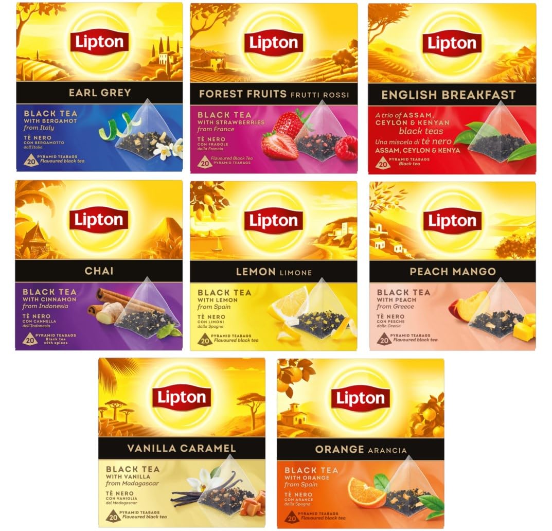 OUR COMMITMENTS: Our boxes have no plastic overwrap, are recyclable, and their cardboard comes from sustainably managed forests. Our tea bags are plant-based. THE LIPTON BLACK TEA RANGE: A perfect harmony of colors, aromas, and flavors, ideally infused thanks to the unique Pyramid tea bag shape to delight all the senses. PREPARATION INSTRUCTIONS: For a perfect cup, let all the flavors infuse for 2 to 3 minutes in 200ml of water at 100 C, without milk or sugar. 100 NATURALLY SOURCED INGREDIENTS: Made with high-quality black tea leaves, Rainforest Alliance certified, this recipe is 100 naturally sourced! A REFINED SENSORY EXPERIENCE: Enjoy all the flavors of Lipton teas. Treat yourself to a warm and refreshing moment with Lipton's loose leaf Orange Black Tea from Spain, Russian Earl Grey and Red Fruit Black Tea 150g, a refined and intensely fruity organic black tea.NOS ENGAGEMENTS : Nos boîtes n'ont pas de suremballage plastique, elles sont recyclables et leur carton est issu de forêts gérées durablement. Nos sachets de thé sont d'origine végétale. LA GAMME THÉS NOIRS LIPTON : Une harmonie parfaite de couleurs, parfums et saveurs, idéalement infusés grâce à la forme unique du sachet Pyramid pour ravir tous les sens. CONSEILS DE PRÉPARATION : Pour une tasse parfaite, laissez toutes les saveurs s'infuser pendant 2 à 3 minutes dans 200ml d'une eau à 100 C, sans lait ni sucre. 100 INGRÉDIENTS D'ORIGINE NATURELLE : Composée de feuilles de the noir de grande qualité, certifiées Rainforest Alliance, cette recette est 100 ingrédients d'origine naturelle !. UNE EXPÉRIENCE SENSORIELLE RAFFINÉE : Appréciez toutes les saveurs des thés Lipton. Offrez-vous un moment chaleureux et rafraîchissant avec le Thé noir Orange d'Espagne, Russian Earl Grey et Thé noir aux fruits rouges de Lipton en vrac 150 g, un thé noir bio raffiné et intensement fruité.Lipton, Thé Noir en Vrac, Lot de 3 Boîtes : x1 Earl Grey, x1 Orange, x1 Fruits rouges, 150g Mélange des 3 saveurs
