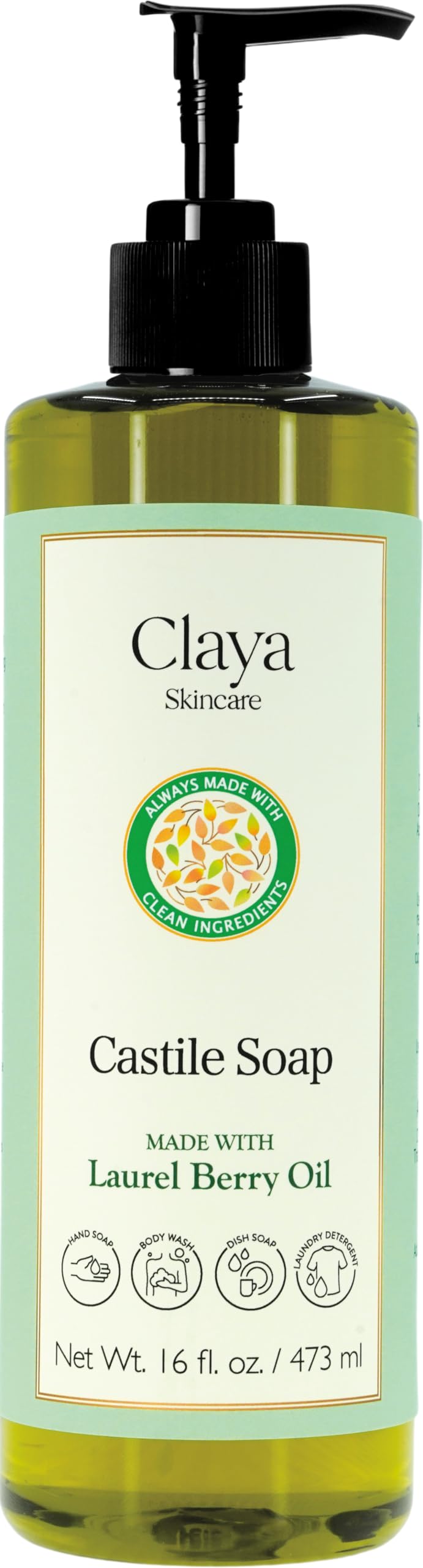 One Bottle, Endless Possibilities. Claya's Liquid Castile Soap is the powerful, all-natural concentrate that replaces a cabinet full of single-use products. Dilute a little for a gentle face wash, or more for an effective floor cleaner. From shampoo to laundry detergent, one bottle does it all. 100 VEGAN, CRUELTY FREE, and NON-GMO. Claya's Cleansing Soaps are environmentally friendly, made with 100 biodegradable ingredients. We formulate using only natural, plant-based, and renewable resources, ethically sourced for a clean conscience. Our products are—and always will be—cruelty-free. Gentle Cleansing, Powered by Nature. We've formulated our hypoallergenic soap with a blend of three organic oils: Castor, Coconut, and Extra Virgin Olive Oil. Together, they provide a thorough yet non-stripping cleanse, specially designed for sensitive skin and to soothe concerns like eczema and psoriasis. Claya's Castile Soap is made with Organic Sustainable plant-based oils and ingredients, without any fillers! The 30-60-10 Ratio of Organic Olive, Organic Coconut, and Organic Castor Oil produces a cleansing lather without using toxic preservatives or foaming agents. It's good for your skin and even better for the environment: soap made from only pure, biodegradable plant oils. 100 REAL NATURAL Soap from Organic Extra Virgin Olive Oil, Organic Castor Oil, and Organic Coconut Oil. MANUFACTURED IN CALIFORNIA. 100 PALM OIL FREE SOAP! Choose our UNSCENTED Soap for a baby mild formula, free of essential oils and fragrance parfum. 2x more concentrated than ordinary liquid soaps. 100 PCR Recycled plastic bottle!.