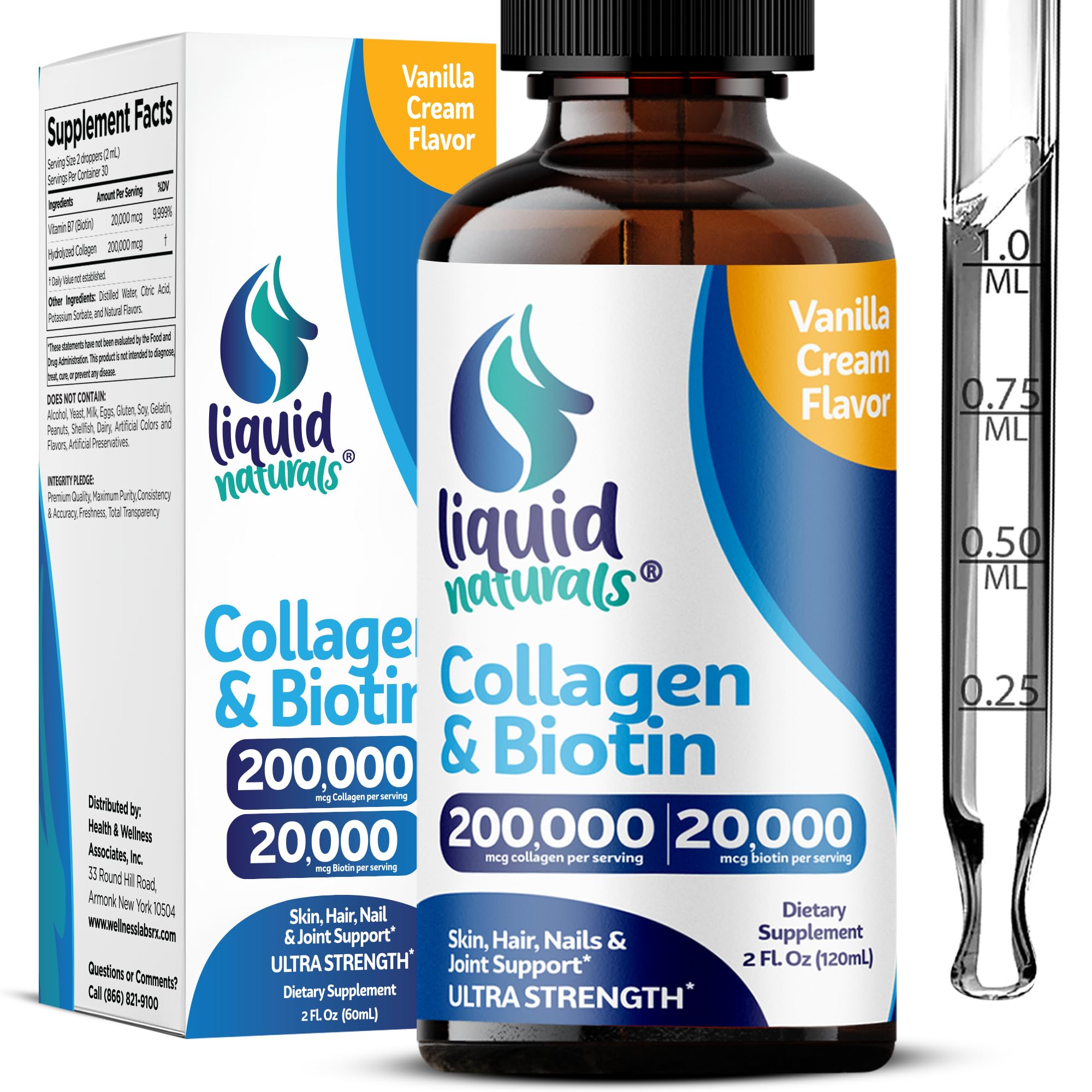 Liquid Collagen and Biotin 2 Fl. Oz Ultra-Strength Collagen Peptides for Women Third-Party Tested Biotin for Hair Growth Women Nails and Skin Vitamins B7 Collageno Peptides Vanilla Flavor 1 Pack