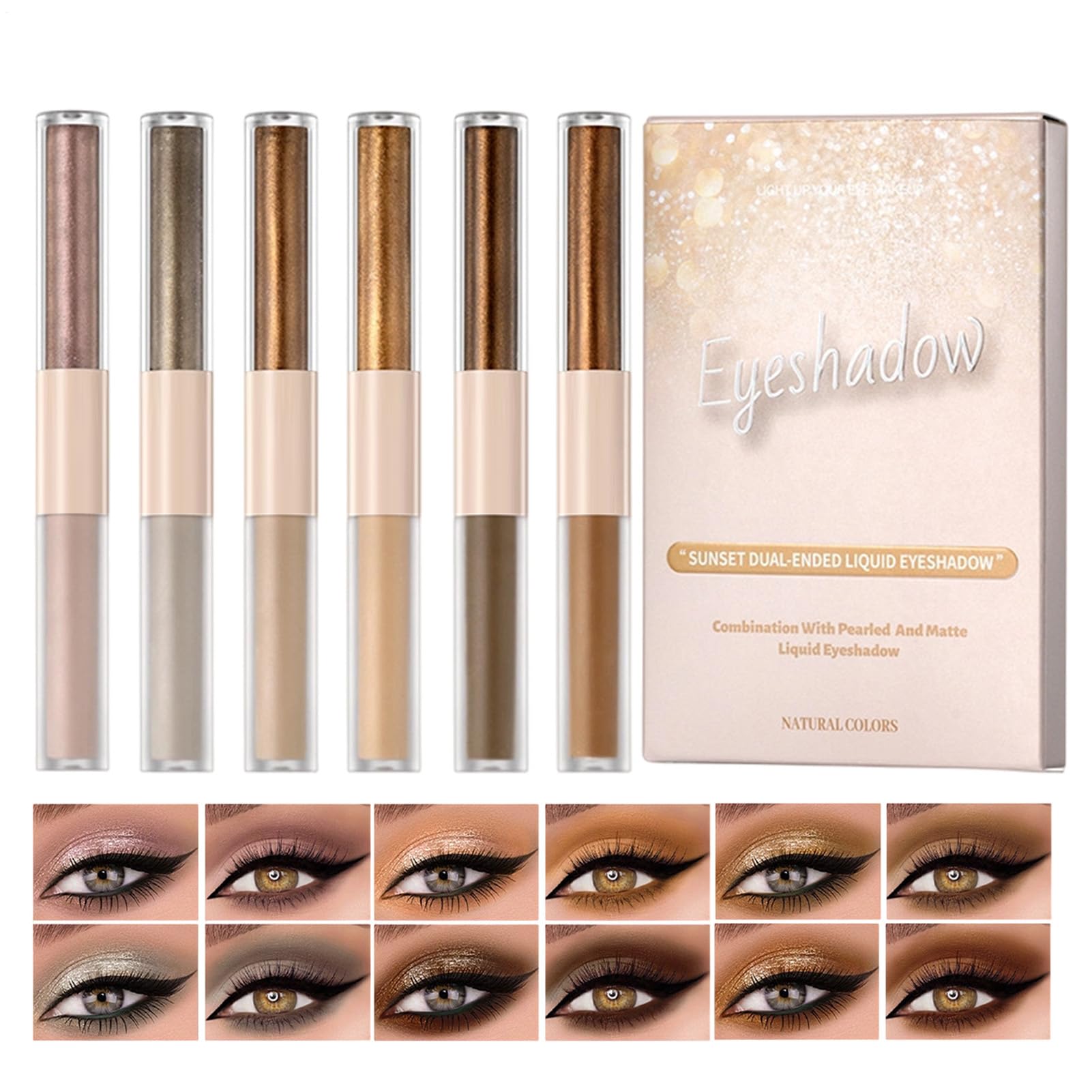 The Matte Shimmer Makeup Eyeshadow offers a versatile 6-piece collection designed for long-lasting and waterproof performance and ideal for women, girls, teens and beginners. The double-sided design guarantees effortless application for both matte and shimmering effects and enhances your look for everyday use, travel, appointments, parties, work, commute, banquets and other social or special occasions. This eyeshadow collection adapts seamlessly to different environments while offering reliable durability and vibrant appearance. Perfect for anyone who wants to create fascinating, eye-catching styles with ease and self-confidence. Specifications: Net weight: (2 plus 2) g x 6 pieces Contents of the delivery: 6 x Liquid Eyeshadow. Note: Due to the light and screen setting difference, the item's color may be slightly different from the pictures. Please allow 1-2cm difference due to manual measurement.Long-lasting wear time and color intensity: The liquid eye shadow for women combines long-wearing comfort with 12 hours of color retention, is water and sweat resistant and dries quickly to prevent smudging. Ideal for weddings, parties or workouts, without the need for adjustments, for a continuously fresh and intensive look. Elegant and easy to use: The liquid eye shadow refines your beauty with shimmering highlights and elegant finish, suitable for events such as parties and stage performances. The travel-friendly compact design allows hassle-free use where necessary and ensures adaptability in different situations. This always achieves a reliable look, ideal for on the go and offering consistent elegance in any setting. Easy and Seamless Blending: With the double-sided precision brush, this liquid eyeshadow set allows extremely easy use, effortlessly creating precise lines or soft transitions. Ideal for versatile make-up in everyday life or on special occasions. The formula is specially developed for even mixing and ensures professional results without hard edges. Perfect for anyone who likes creative looks with liquid eyeshadow and saves time. Universal Color Palette: This liquid eyeshadow delivers six universal shades designed for a variety of skin tones and offering flexible styling options as a single shade or layered look. It shines both at work and at evening meetings and provides perfect make-up that brings out every facial color to its best advantage. Clump-Free Formula and Texture: This liquid eyeshadow has a double-effect texture that leaves a creamy base under a delicate glossy coating, creating depth without clumps or wrinkles. Ideal to give your eyes definition and appeal in any environment, whether in everyday life or on special occasions. The formula guarantees effortless use for a homogeneous result that emphasizes and refines the look, without fading or.Vloeibare oogschaduw, 6-delig, dubbelzijdig waterdicht, glanzende vloeibare oogcosmetica, voor vrouwen, tieners, beginners, dagelijks gebruik, reizen, dating, feest, werk, bruiloft De matte glinsterende make-up oogschaduw biedt een veelzijdige 6-delige collectie, die is ontwikkeld voor langdurige en waterdichte prestaties en ideaal is voor dames, meisjes, tieners en beginners. Het dubbelzijdige ontwerp garandeert moeiteloos aanbrengen voor zowel matte als glinsterende effecten en benadrukt je look voor dagelijks gebruik, reizen, afspraken, feesten, werk, pendelen, banketten en andere sociale of speciale gelegenheden. Deze oogschaduwcollectie past zich naadloos aan verschillende omgevingen aan, terwijl hij betrouwbare duurzaamheid en levendige uitstraling biedt. Perfect voor iedereen die fascinerende, opvallende stijlen met gemak en zelfbewustzijn wil creëren. Specificaties: Nettogewicht: (2 plus 2) g x 6 stuks Inhoud van de levering: 6 x vloeibare oogschaduw. Opmerking: Vanwege het verschil in licht- en beeldscherminstellingen kan de kleur van het artikel enigszins afwijken van de afbeeldingen. Houd rekening met een verschil van 1-2 cm vanwege handmatige meting.Langdurige draagtijd en kleurintensiteit: de vloeibare oogschaduw voor vrouwen combineert langdurig draagcomfort met 12 uur kleurretentie, is water- en zweetbestendig en droogt snel om vlekken te voorkomen. Ideaal voor bruiloften, feestjes of workouts, zonder dat er aanpassingen nodig zijn, voor een doorlopend frisse en intensieve look. Elegant en gemakkelijk te gebruiken: de vloeibare oogschaduw verfijnt je schoonheid met glinsterende highlights en elegante afwerking, geschikt voor evenementen zoals feesten en podiumoptredens. Het reisvriendelijke compacte ontwerp maakt probleemloos gebruik waar nodig mogelijk en zorgt voor aanpassingsvermogen in verschillende situaties. Hiermee bereik je altijd een betrouwbare look, ideaal voor onderweg en consistente elegantie in elke setting biedt. Eenvoudig en naadloos mengen: met de dubbelzijdige precisieborstel maakt deze vloeibare oogschaduwset een extreem eenvoudig gebruik mogelijk, die moeiteloos nauwkeurige lijnen of zachte overgangen creëert. Ideaal voor een veelzijdige make-up in het dagelijks leven of bij speciale gelegenheden. De formule is speciaal ontwikkeld voor gelijkmatig mengen en zorgt voor professionele resultaten zonder harde randen. Perfect voor iedereen die van creatieve looks met vloeibare oogschaduw houdt en daarbij tijd bespaart. Universeel kleurenpalet: deze vloeibare oogschaduw levert zes universele tinten die zijn ontworpen voor diverse huidtinten en flexibele styling-opties bieden als een enkele tint of gelaagde look. Hij glanst zowel op het werk als bij avondbijeenkomsten en zorgt voor een perfecte make-up, die elke gezichtskleur optimaal tot zijn recht brengt. Klumvrije formule en textuur: deze vloeibare oogschaduw heeft een textuur met dubbel effect die een romige e basis onder een delicate glanzende coating laat, waardoor diepte ontstaat zonder klonten of rimpels. Ideaal om je ogen in elke omgeving definitie en aantrekkingskracht te geven, of het nu in het dagelijks leven of bij speciale gelegenhed