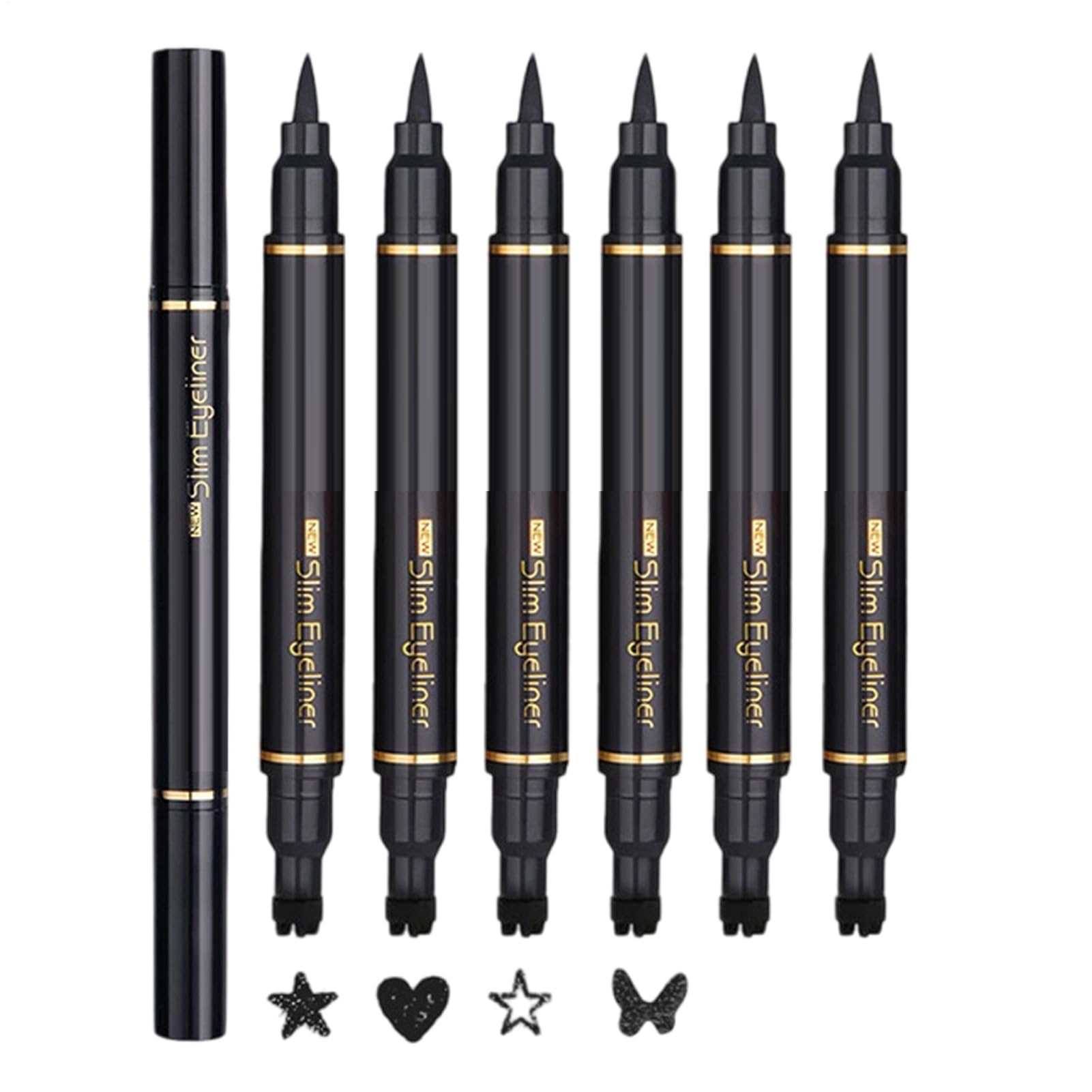 Liquid Eyeliner Pen DoubleHeaded Eyeliner Stamp Set 6 Pieces Long Lasting Water Resistant Cosmetics for Women Beauty for Stage Travel Party Performance Cosplay Wedding Holiday